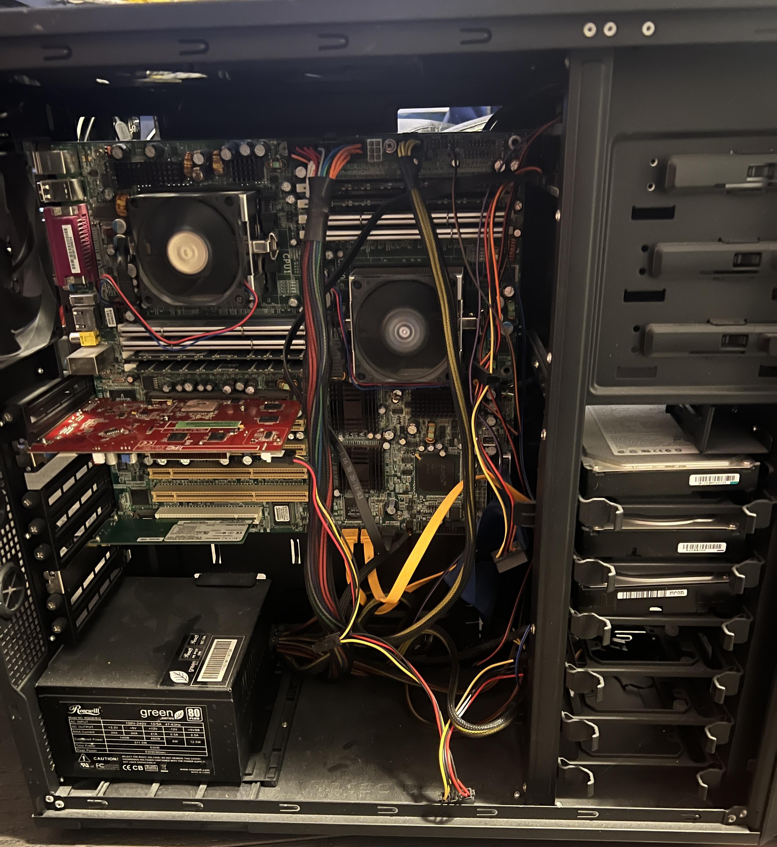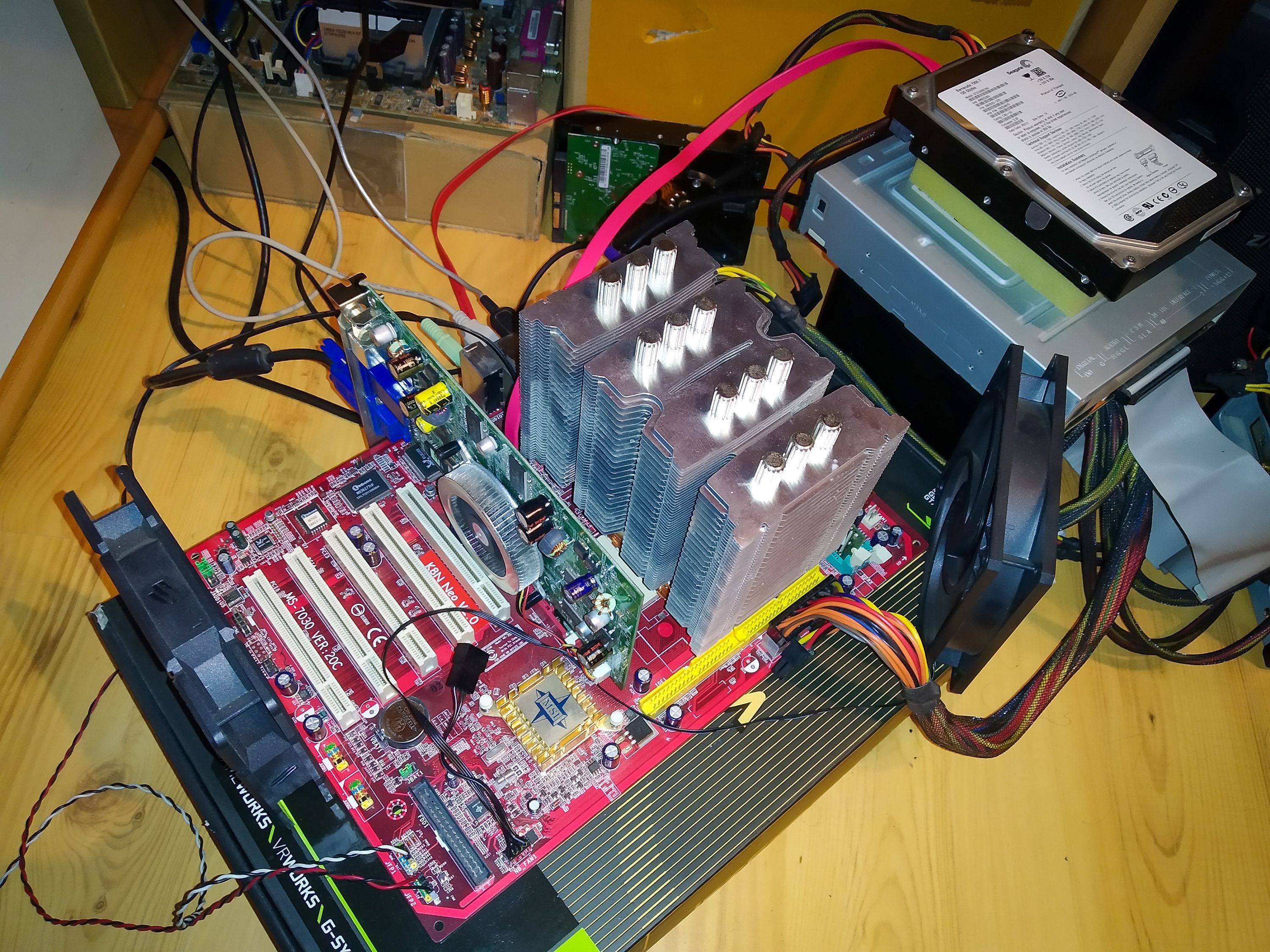 Wszystko to odbywało się na platformie z Celeron'em Mendocino 433MHz, Abit'em BE6, Sound Blaster'em PCI 128 (CT4810) i początkowo 64MB ramu PC100. Całości dogrywał głośny dysk IBM DJNA-351520 o pojemności 15,2GB.