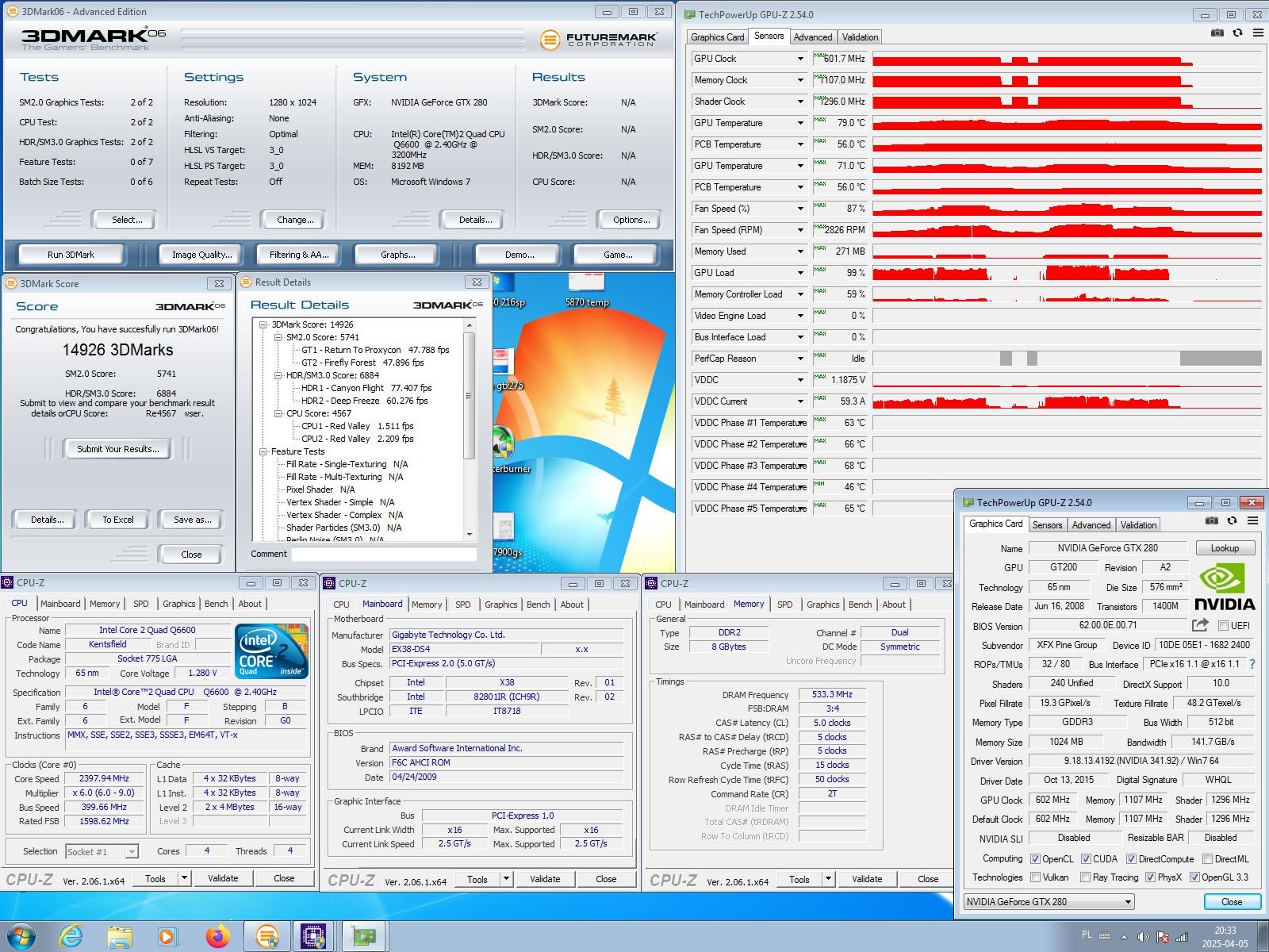Karty na razie przetestowałem w 3dmark 06. Jedna 280 ma sporo lepsze temperatury ale i tak są w tym teście blokowane przez q6600.