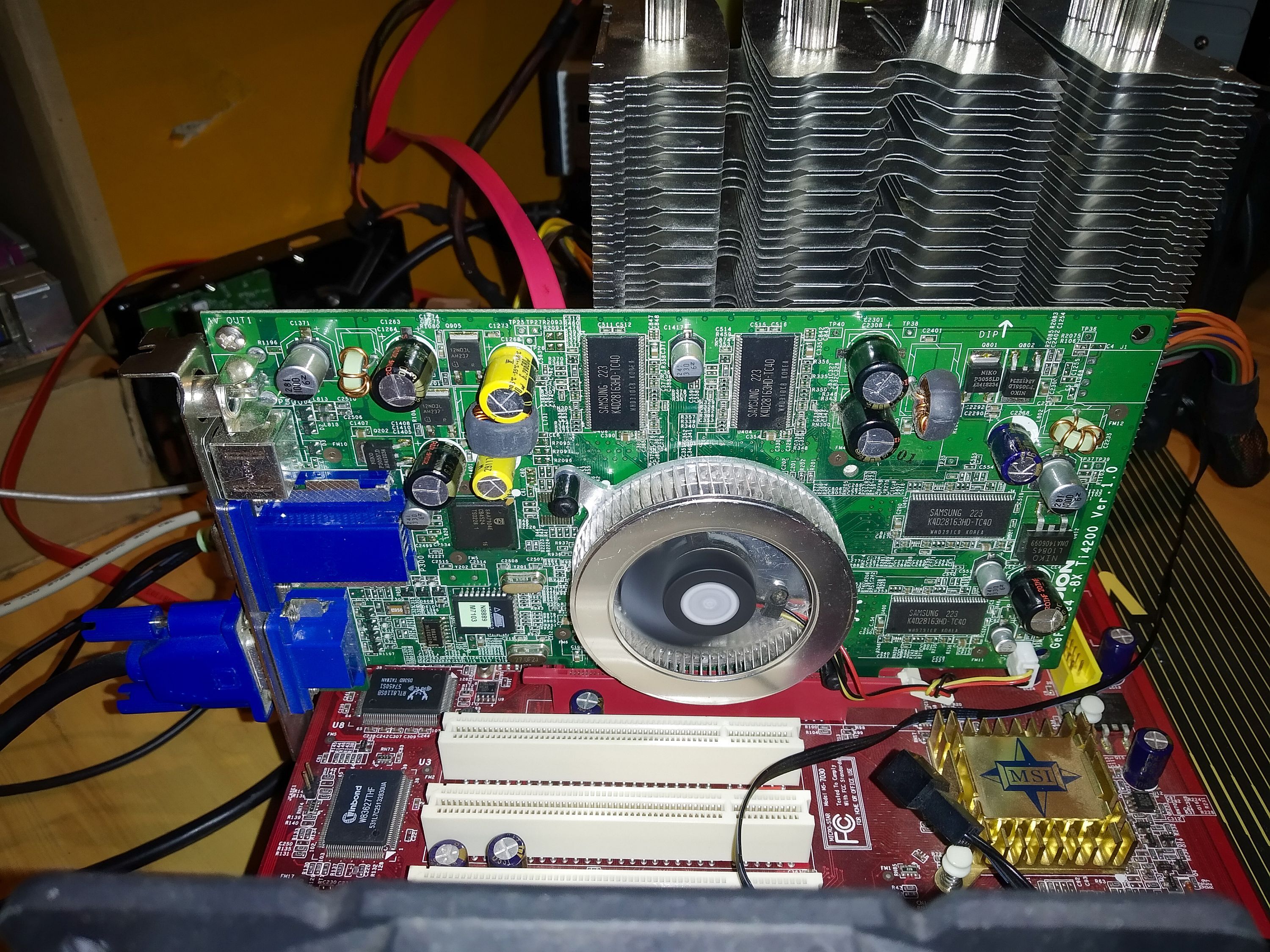 W zeszłym roku wyrwałem sprawną HD 3870X2 od Asusa, myślę że można to już uznać za retro. Trochę pokręciłem ale karta nie pozwala na zbyt wiele ze względu na gigantyczne temperatury VRMu - nawiew tylko trochę jej pomagał.