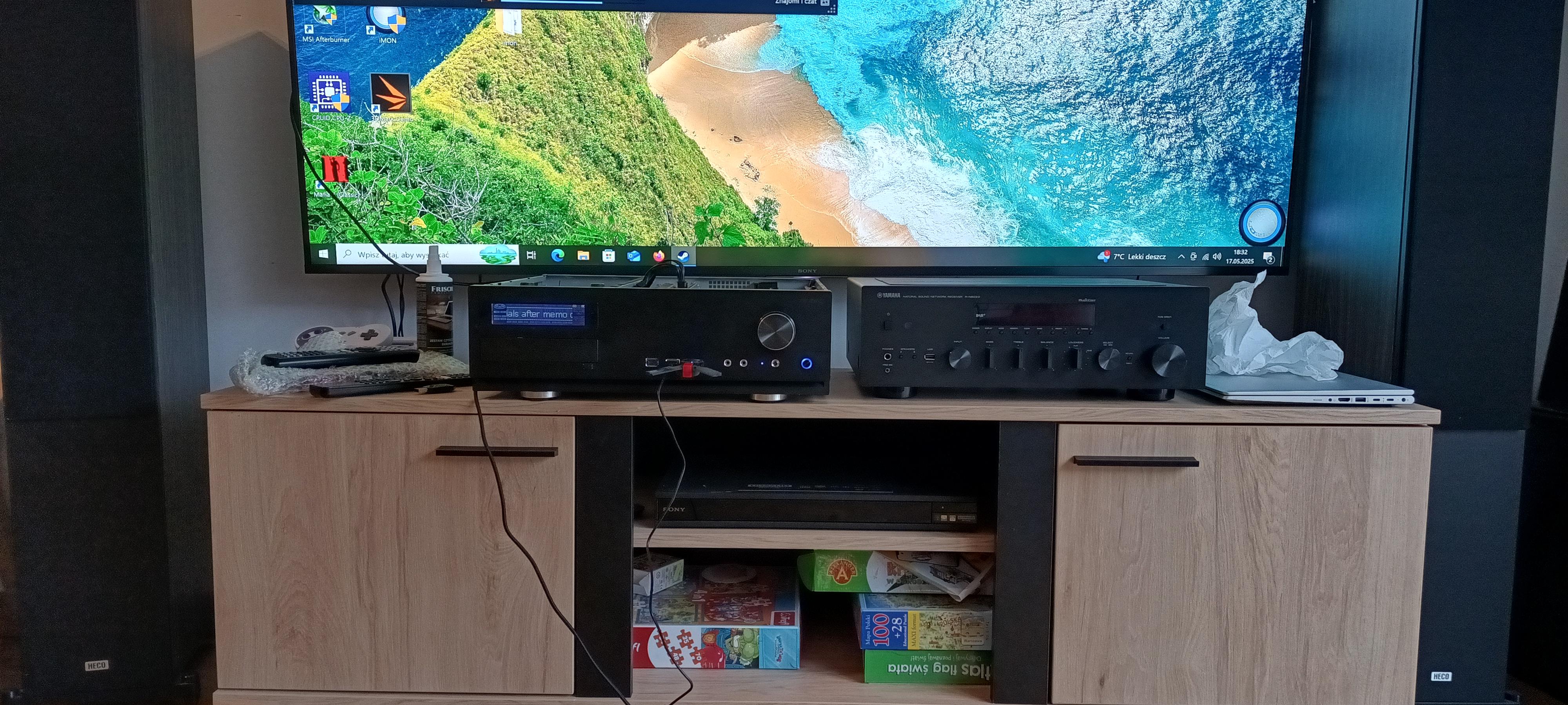 Poskładałem to w obudowie Antec Fusion Remote, udało sie uruchomić wyświetlacz pod windows 10 ale zrobiłem grubego babola, to moje pierwsze htpc i nie przewidziałem że będzie problem z wtyczką zasilania karty graficznej, jak to zobaczyłem to już kabli odechciało mi się układać, zamówiłem przejściówkę kątową od Pana Chińczyka, może uda się wtedy domknąć górną pokrywę obudowy.