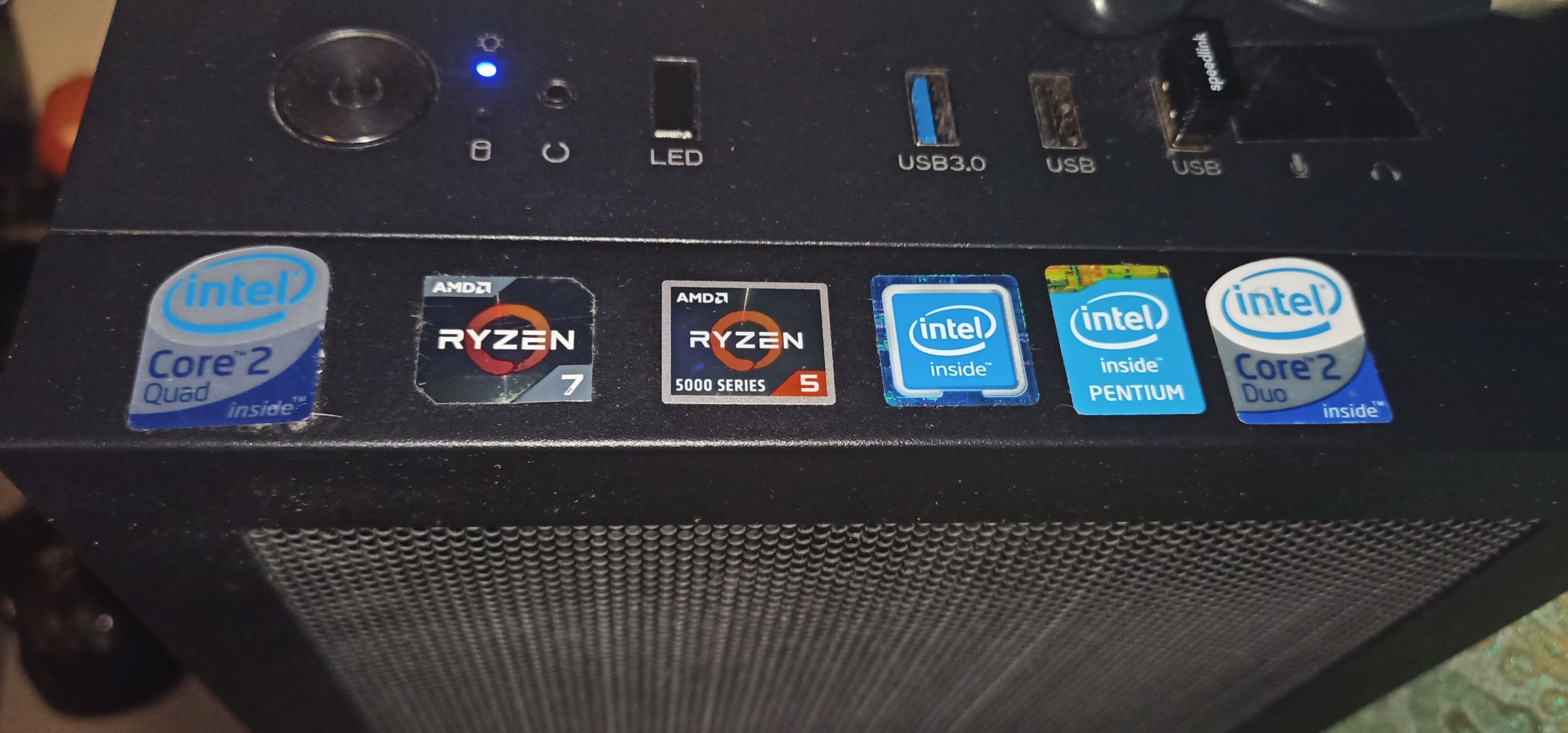 Wczoraj z głębi pokoju wygrzebane zostały dwie stare obudowy więc wziąłem sobie naklejki. To te trzy ostatnie intele. Była też od phenoma 2, ale Te stare naklejki AMD to lipa była. Rozwarstwiła się i tyle jej było.