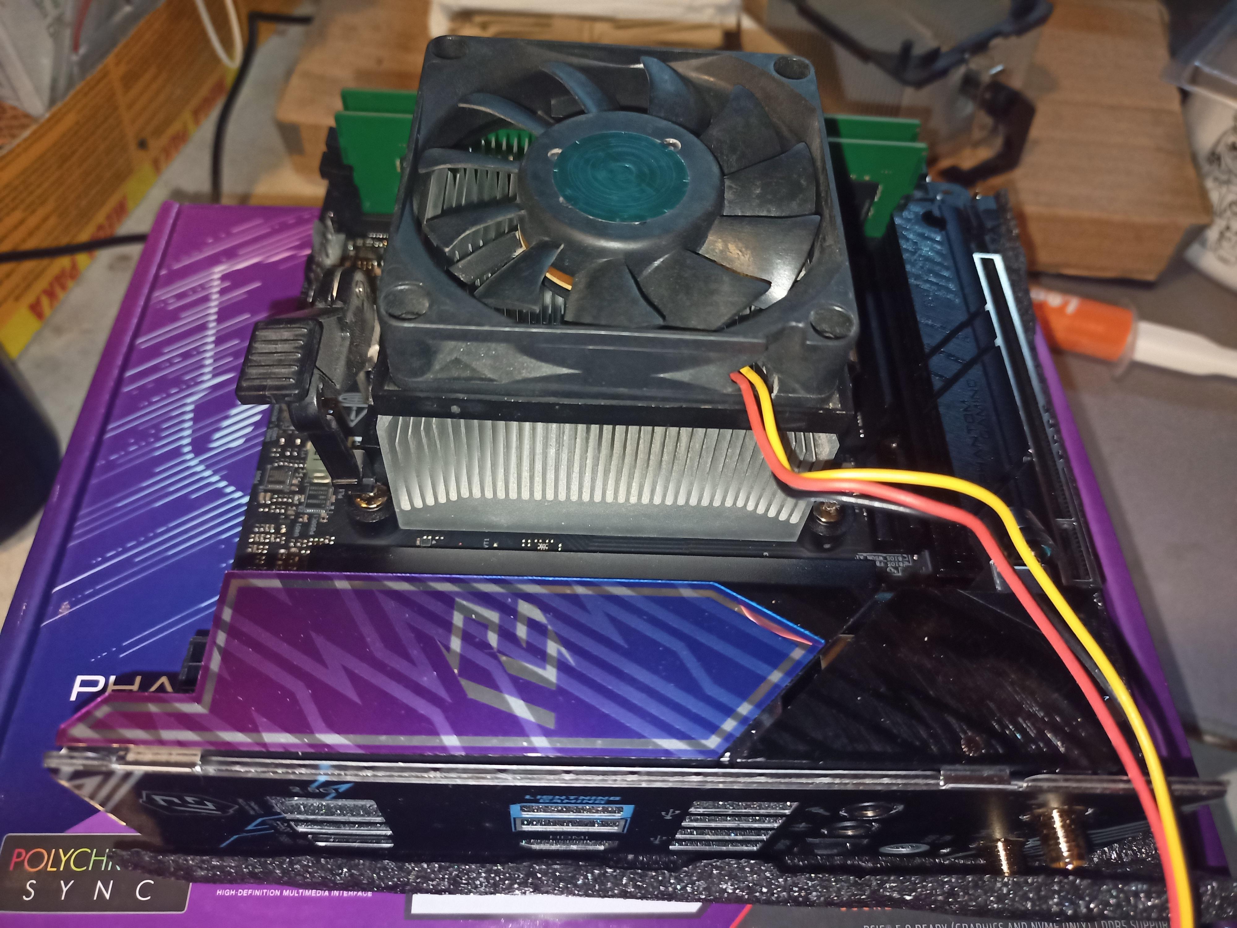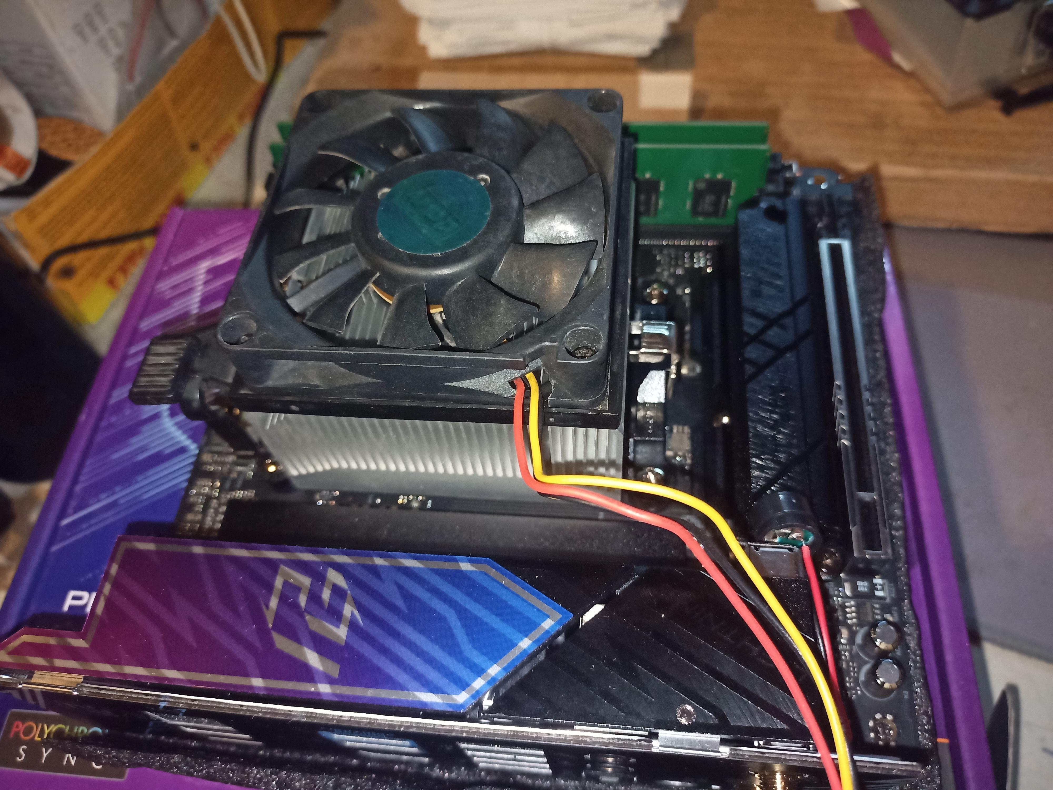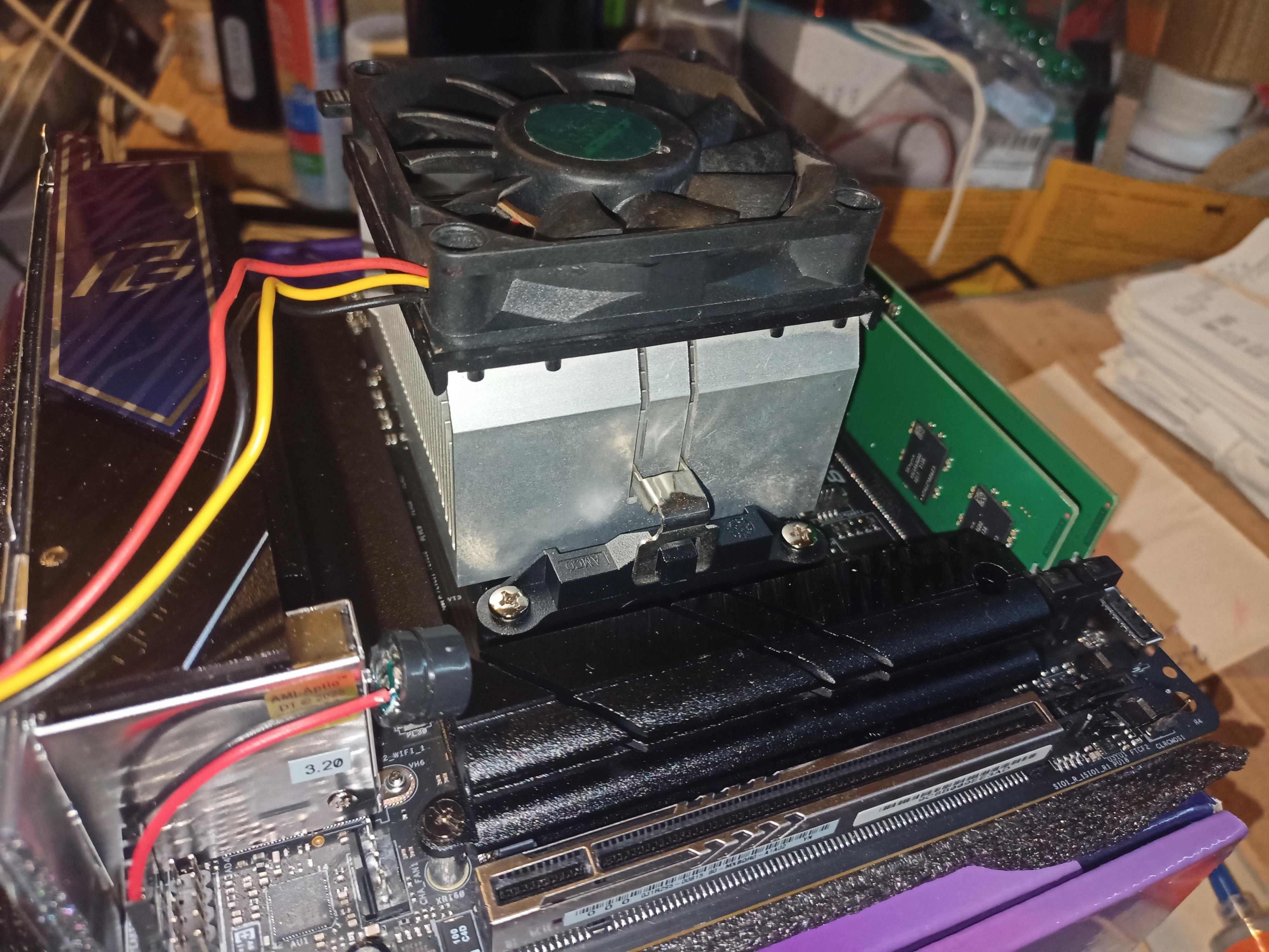 Oryginalny cooler jaki mi dali to jakaś niska i lekka wersja i nie zakrywa całego ihs. 180 gramów. Myślałem aby wrzucić coś większego, chyba 280 gramowy box z jeszcze oryginalną pastą z 2005 roku ale na teraz wrzuciłem takiego kwiatka od Zalman.