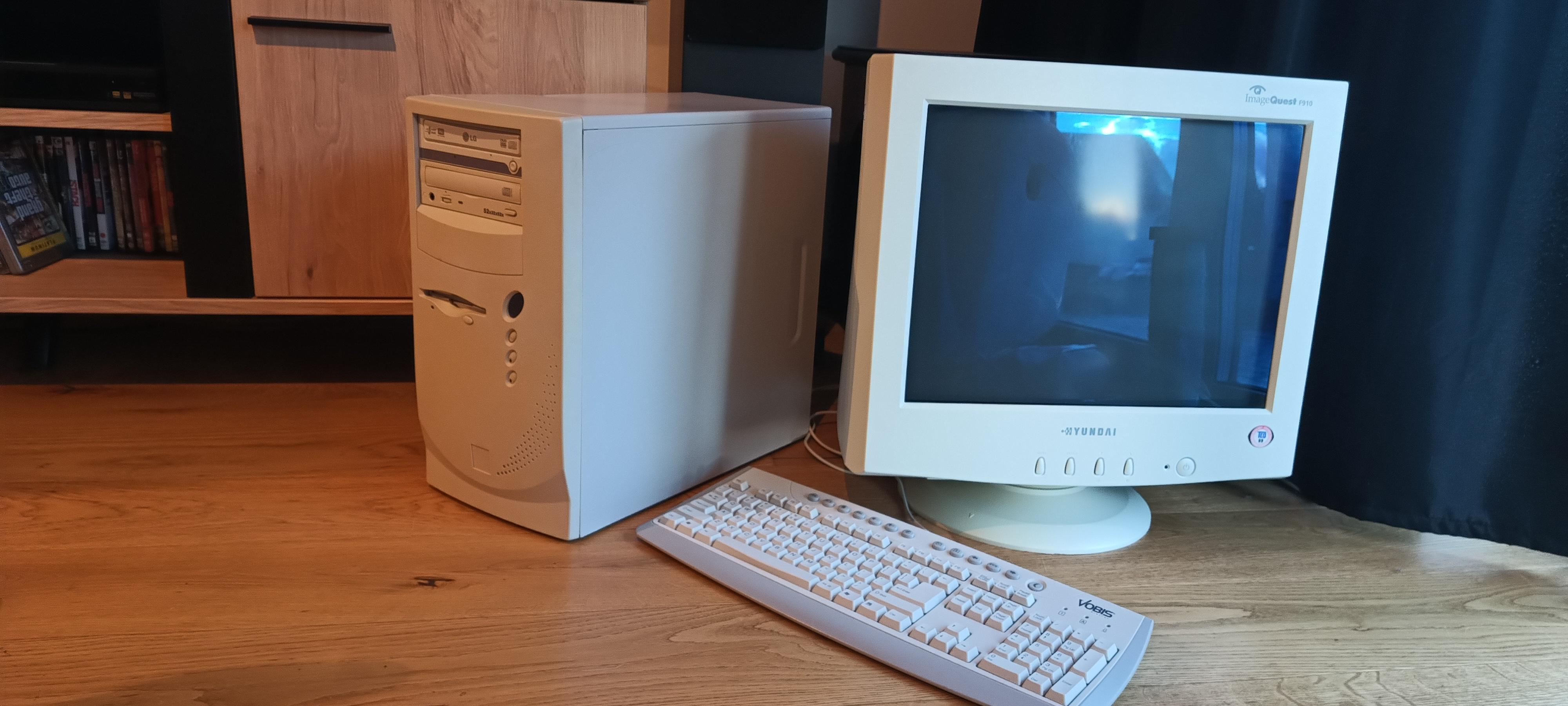 Po kosmetycznej zmianie przód mojego retro kompa wygląda następująco. Nieco mniej się rzuca w oczy tacka nagrywarki względem poprzedniego stanu xD.