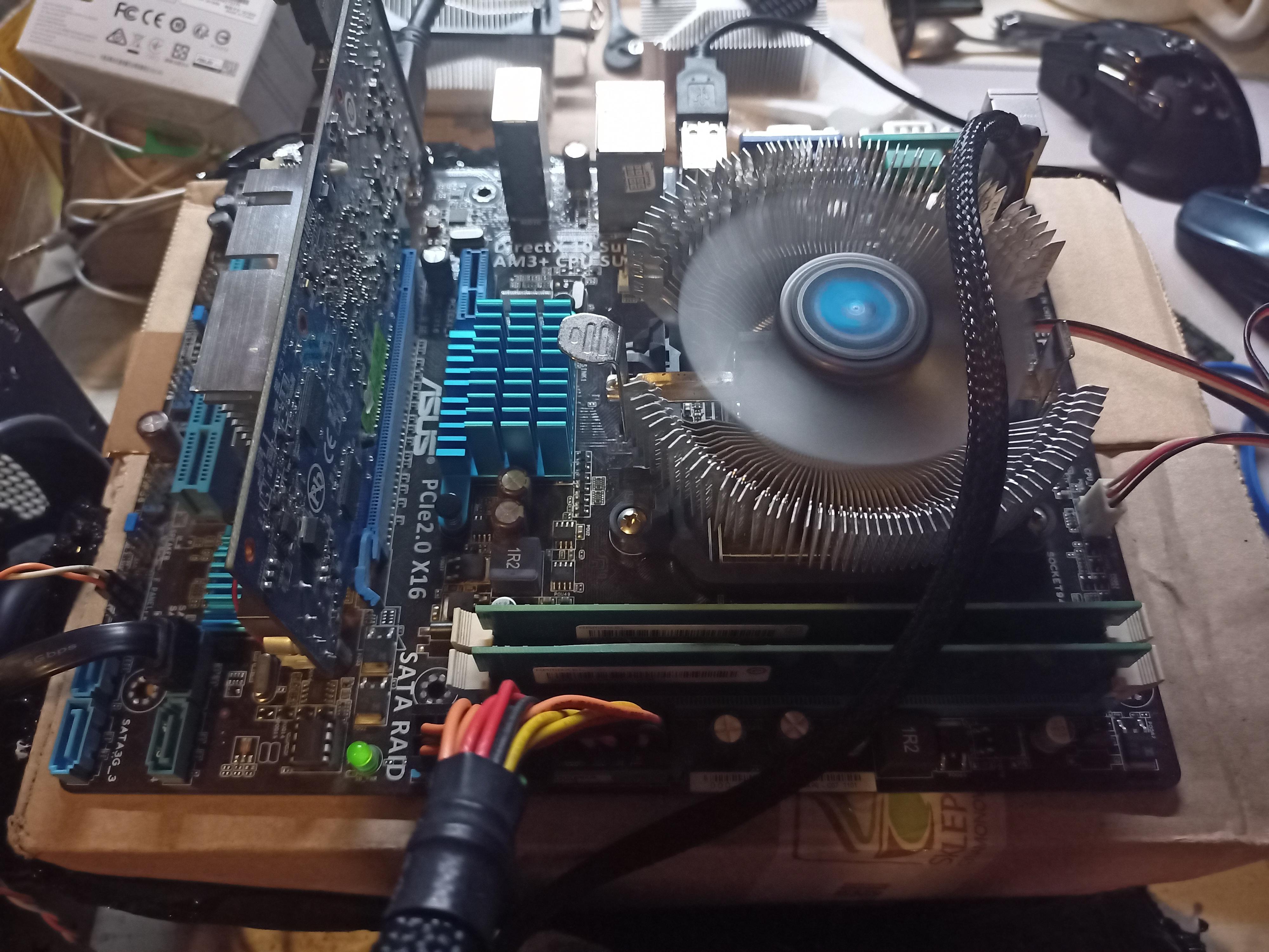 Podłączyłem co trzeba i uruchomiłem, normalnie się odpala, na każdym z czterech slotów pamięci RAM wykrywa obsadzony RAM, dual channel normalnie działa, więc podstawowe testy.