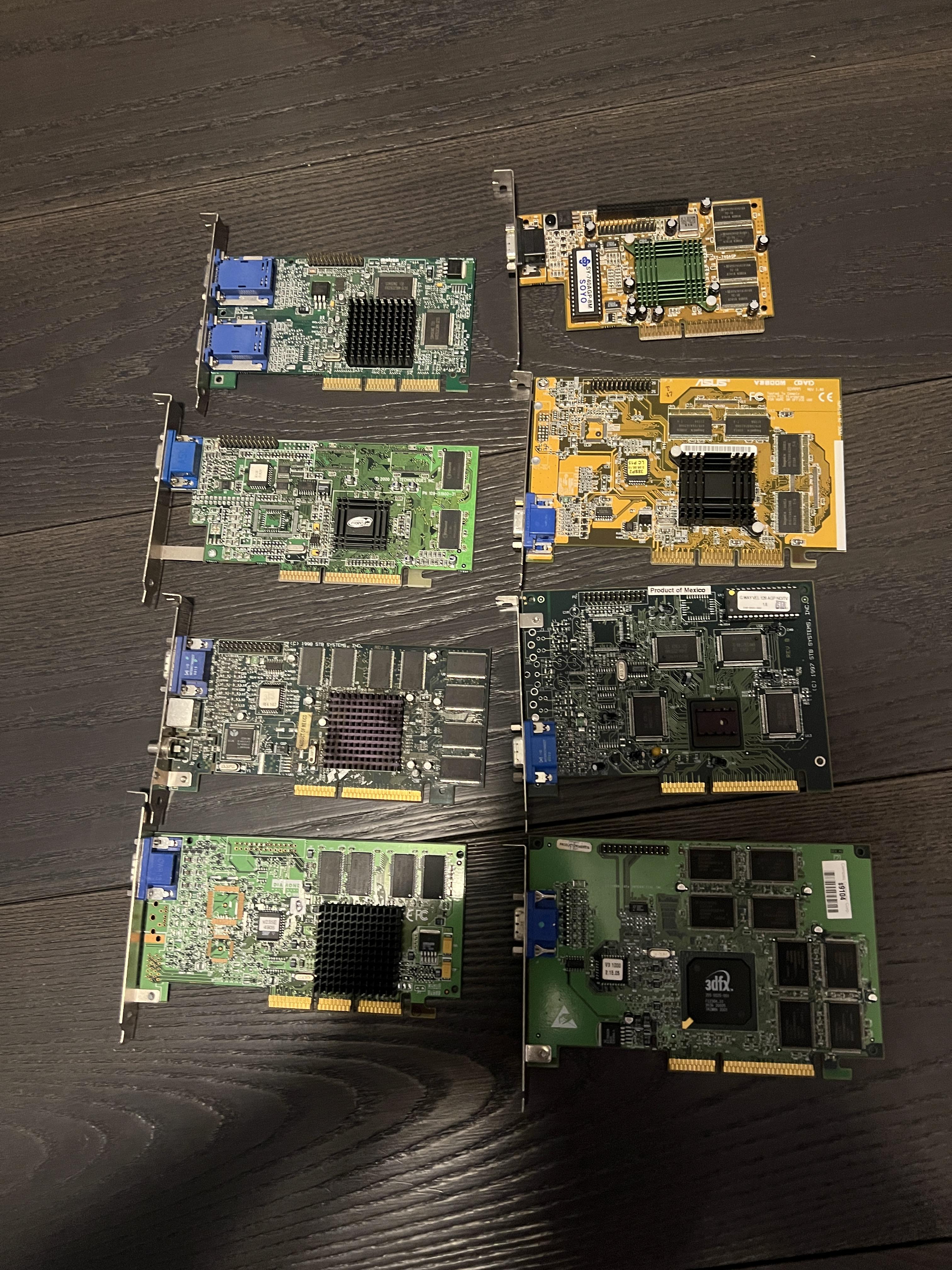 Sprawdziłem karty i niestety Ti4800 wali artefaktami i wiesza komputer, reszta sprawna i sprawdzona w 3dmark, nie wiem też czemu ale gpu z wieszał mi się przy Geforce 2Ti.