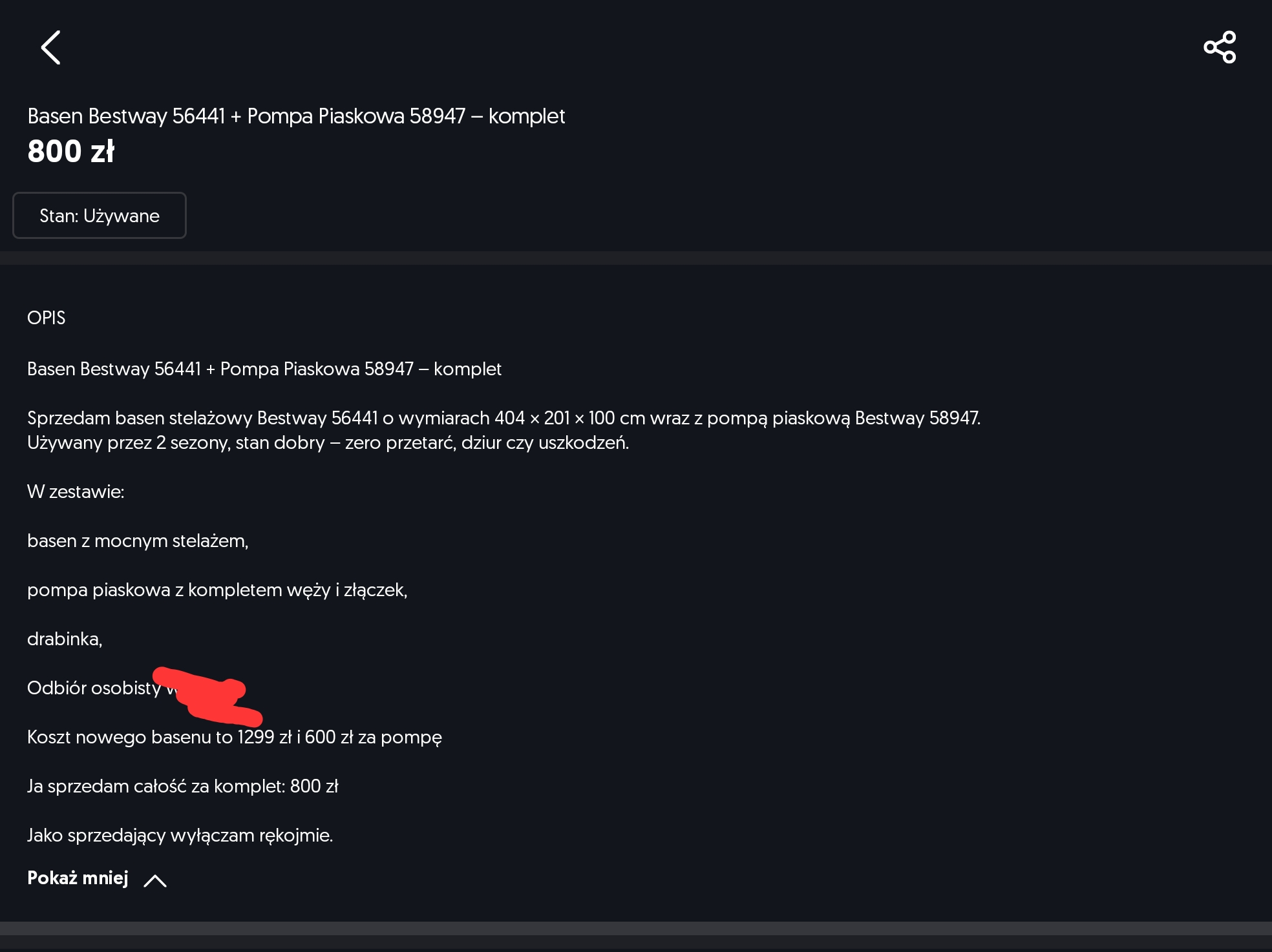 W skrócie: wystawiłem basen na sprzedaż, wisiał tak dłuższy czas, w końcu dzwoni gość i mówi, że chce samą niecke, zaproponował 350 zł. Zgodziłem się, bo mam już plany na zagospodarowanie terenu. Poprosił o film z obecnego stanu basenu, więc taki zrobiłem i wysłałem. Powiedział, że przyjedzie, więc wylałem wodę i rozłożyłem basen na części kładąc wszytko na trawę. Gość przyjechał, obejrzał sobie całość, sam go zwinął tak, aby zmieścił się do auta (niecka była rozłożona w całości na trawie, więc musiał ją poskładać), zapakował resztę części i pojechał. Mija kilka godzin i... reszta w poniżej :E