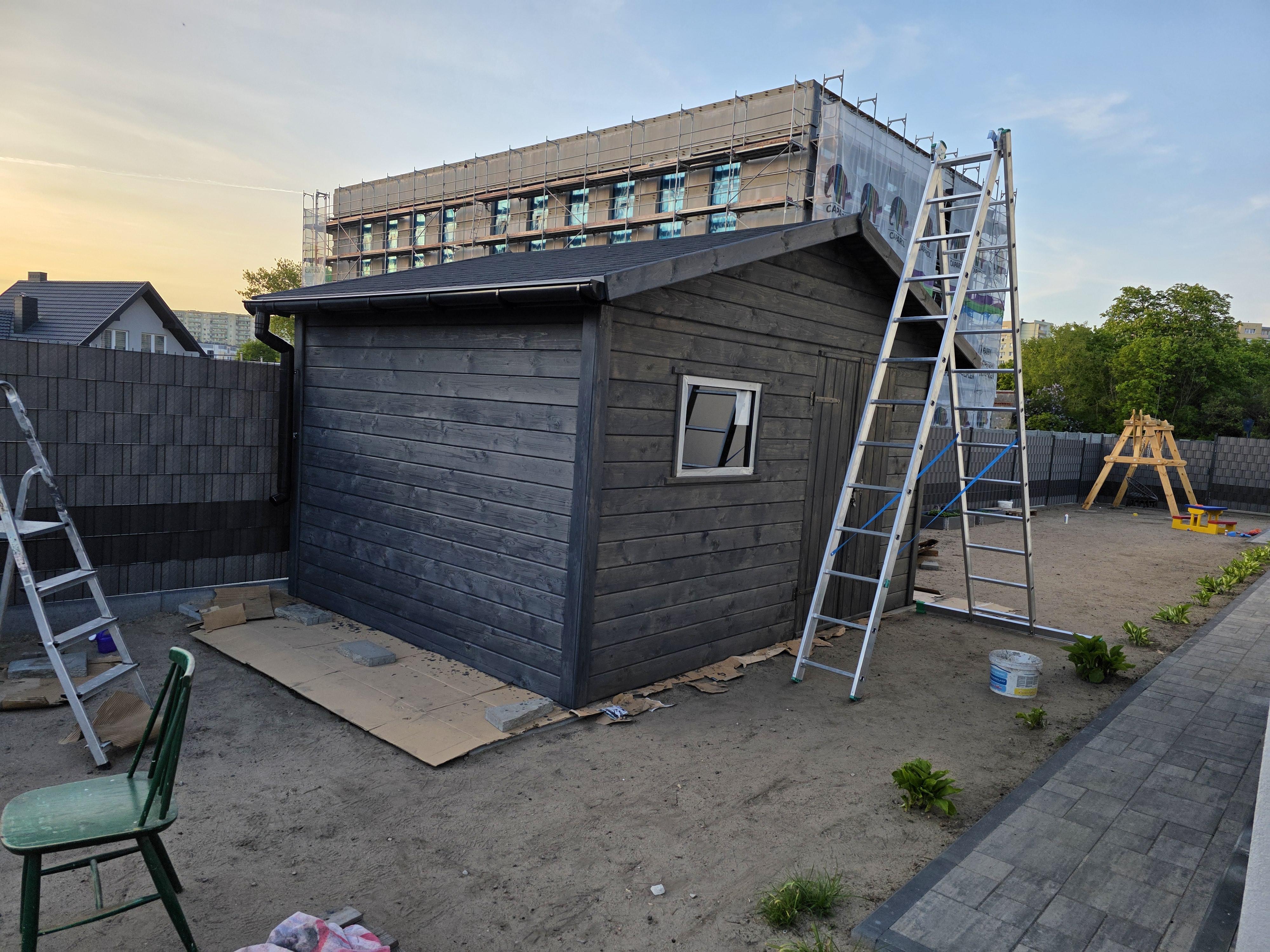 Pany, szopa pomalowana. dziś spiąłem zadek i weszły dwie warstwy. Zdjecie jeszcze przed drugą warstwa na froncie (z drzwiami) ale wygląda ładnie ;)