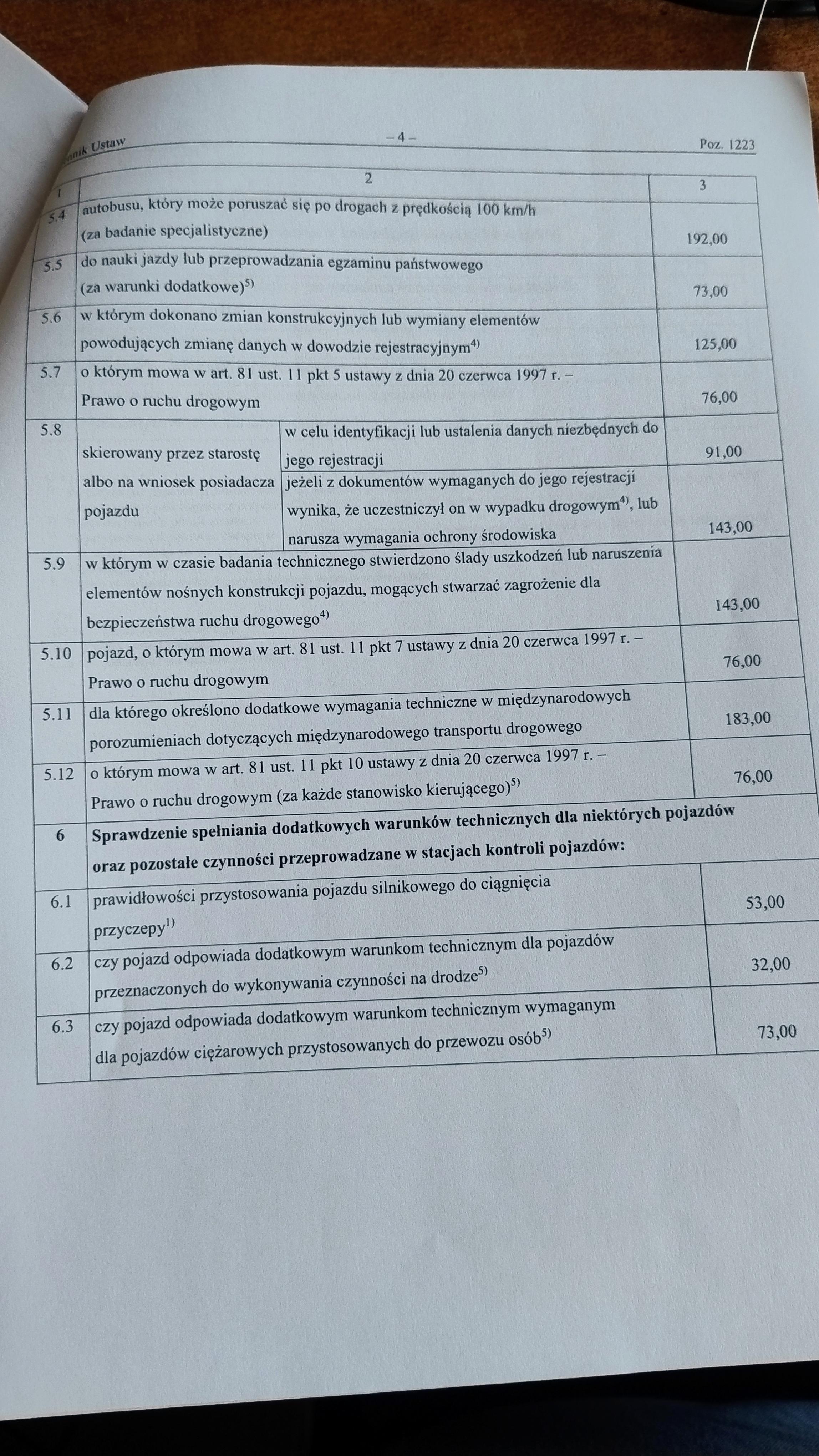 6.2czy pojazd odpowiada dodatkowym warunkom technicznym dla pojazdów przeznaczonych do wykonywania czynności na drodze5) 32,00