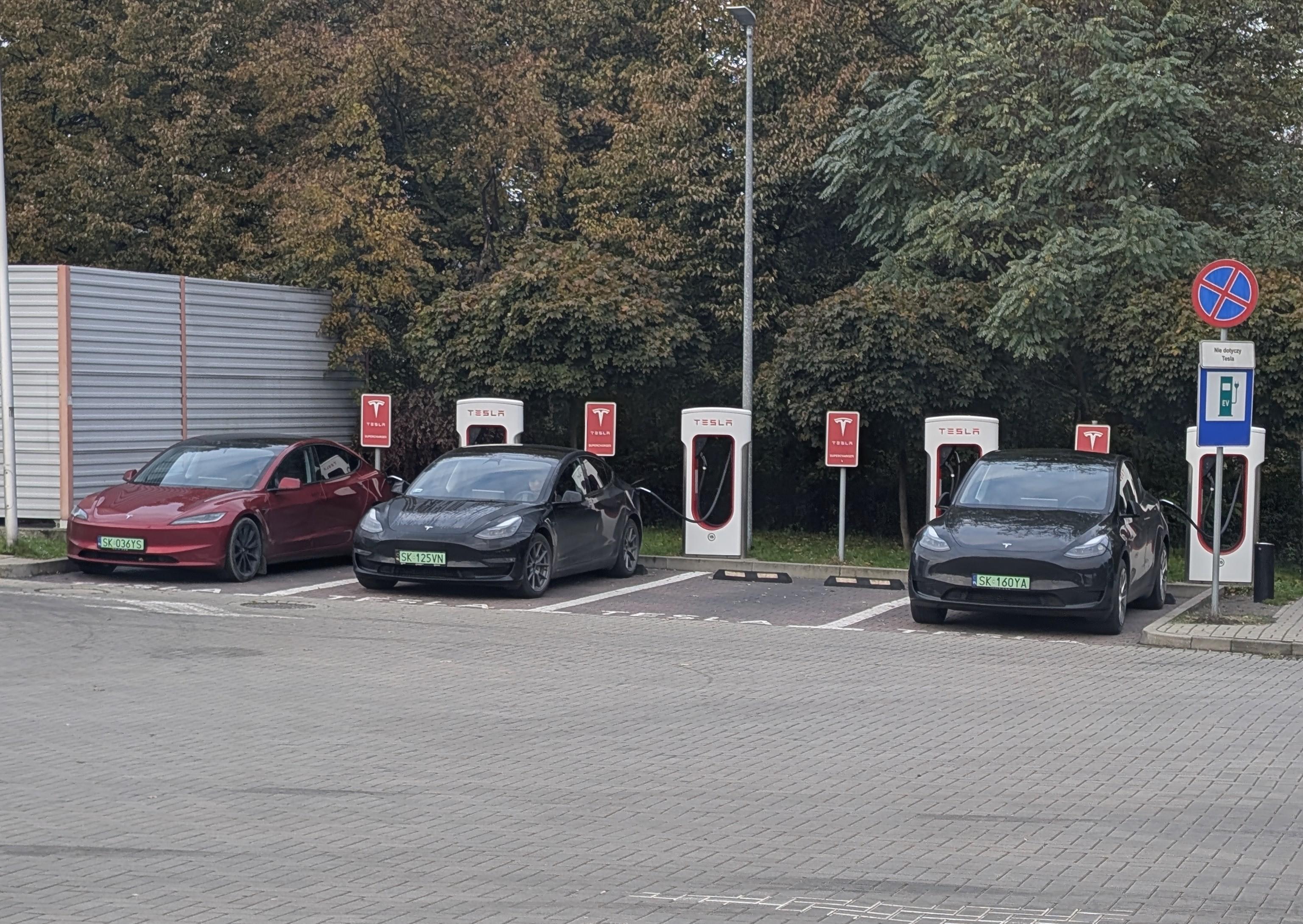 Na szczęście przy tej stacji jest Supercharger Tesli, gdzie w środku tygodnia o 9 rano może być problem z naładowaniem :E