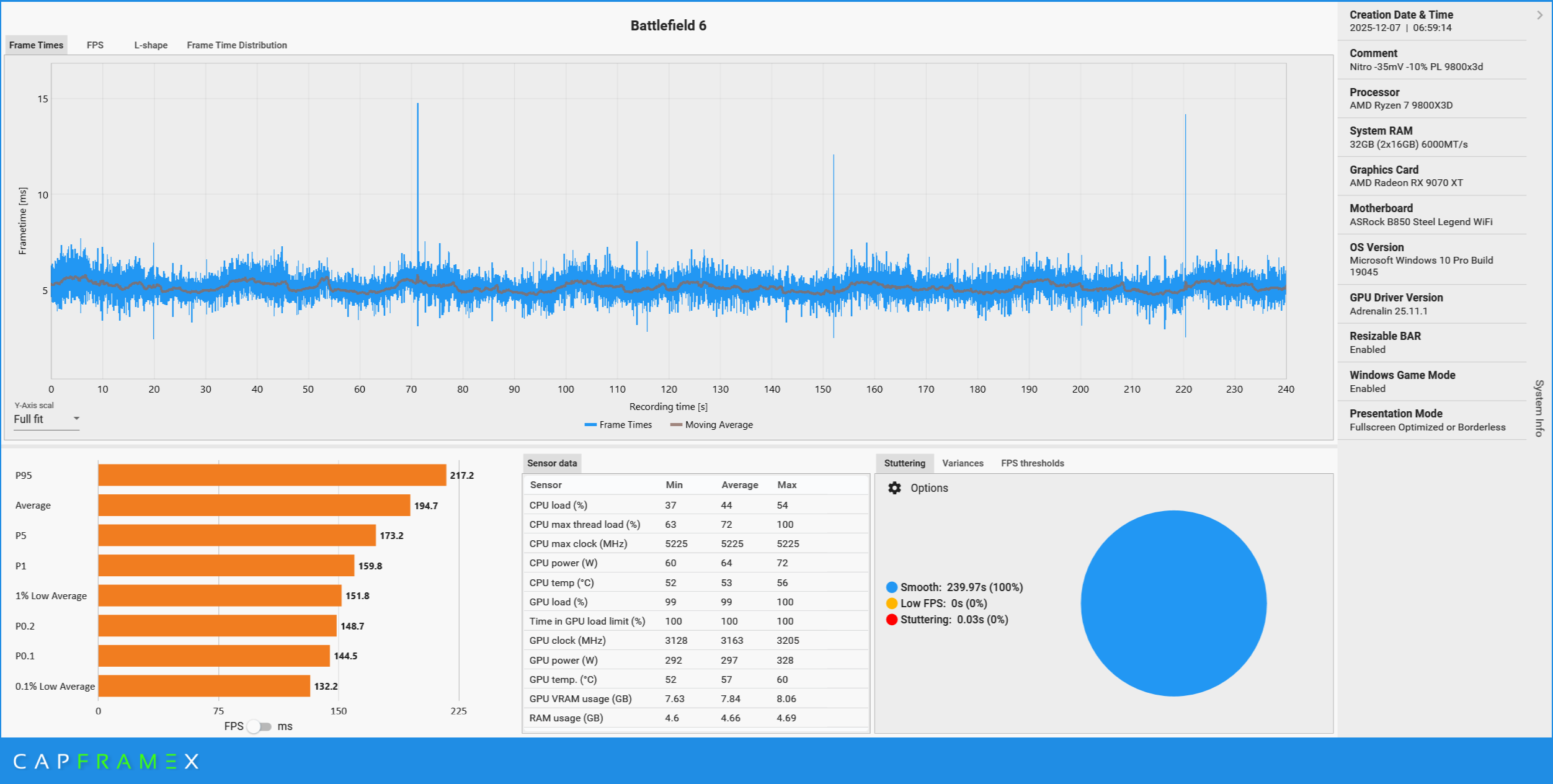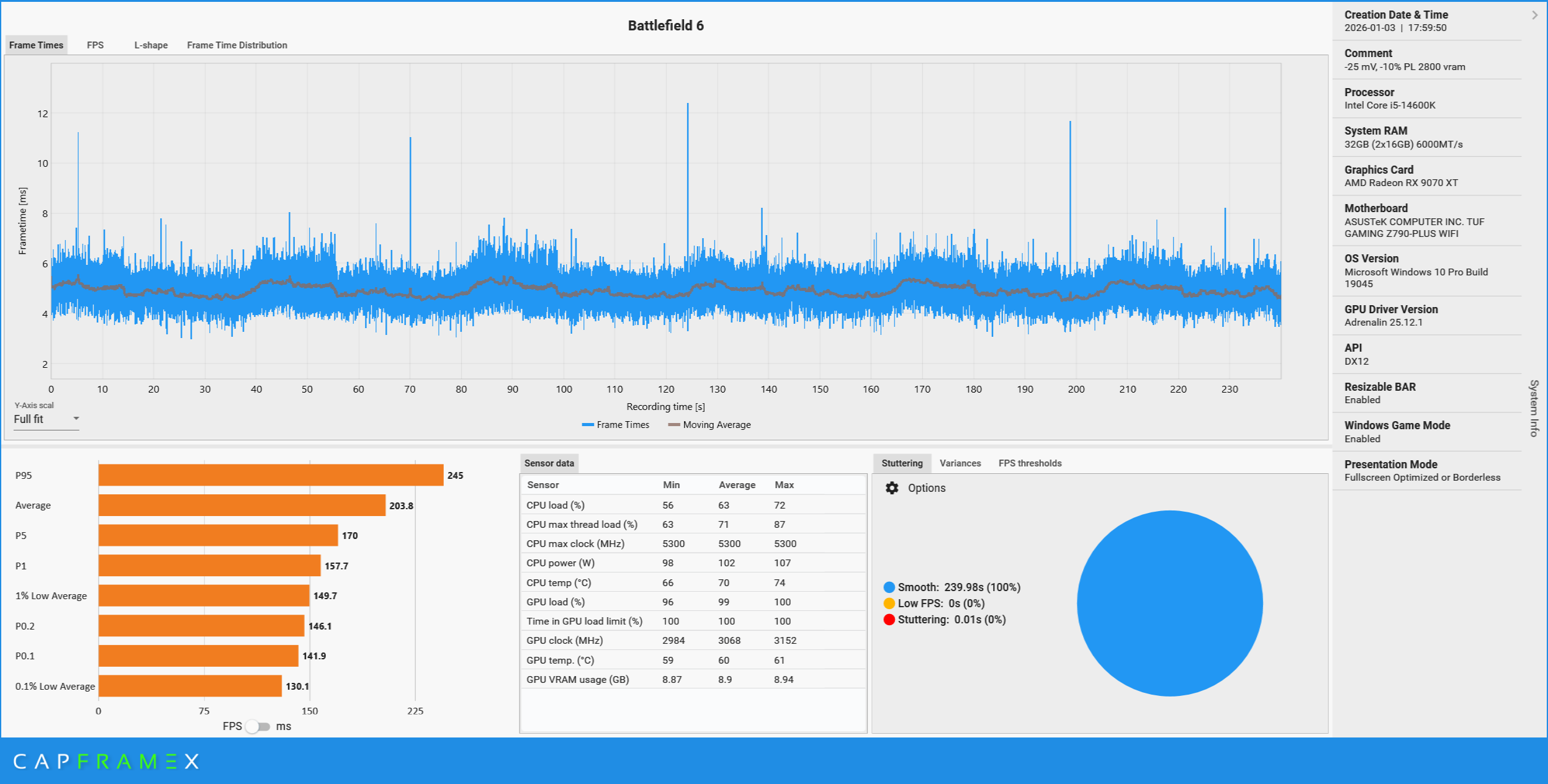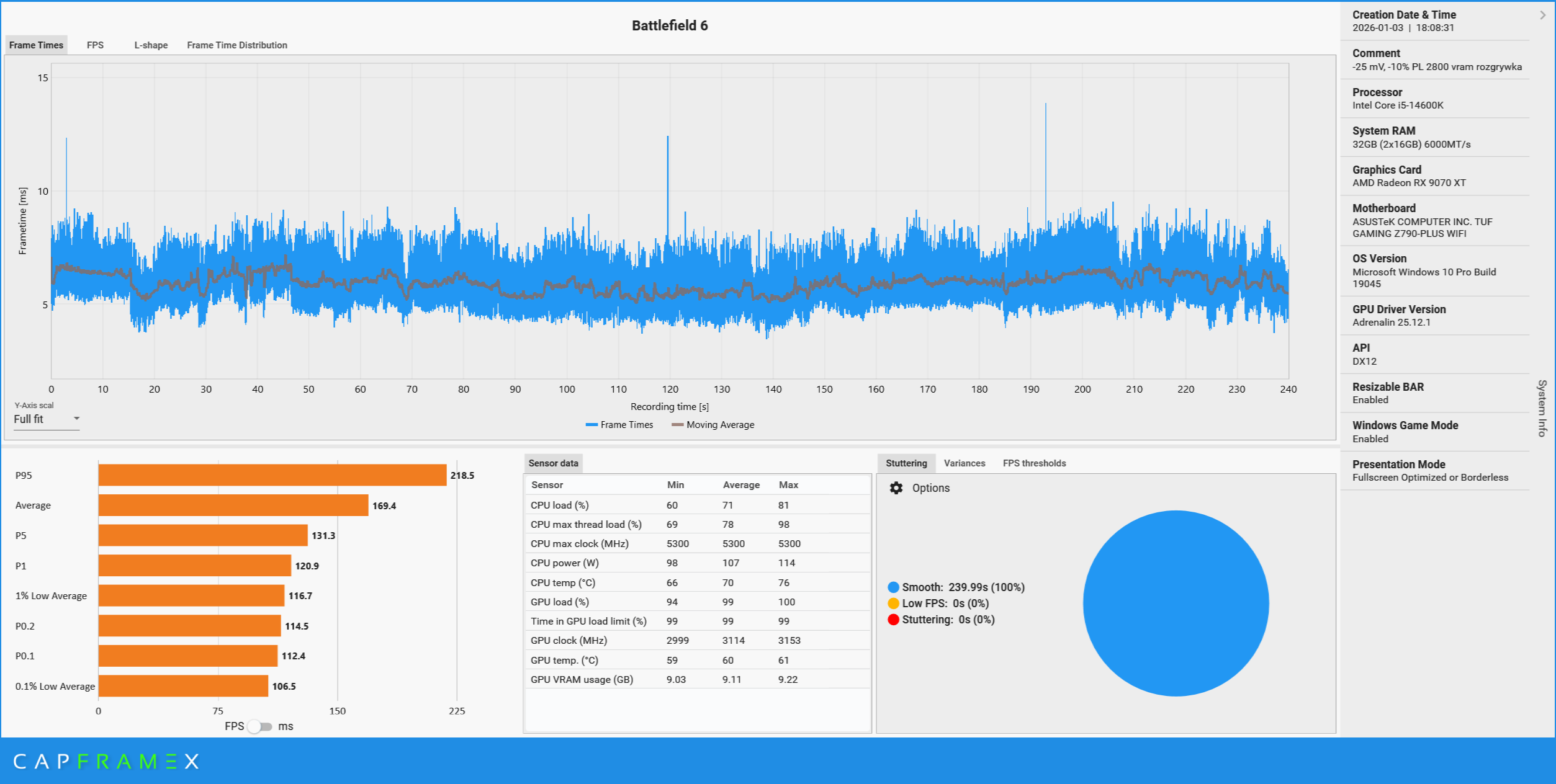 Test w BF6. GPU -25 - 35 mV i -10% PL