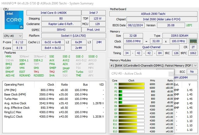 Mam pytanie, czy komuś oprócz mnie z tutejszego szanownego grona udało się stabilnie podkręcić 14600K na dwóch pierwszych rdzeniach do 6 GHZ (pozostałe P na 5.4Ghz), tak aby mieć dużo wyższą na co dzień wydajność jednowątkową i zechce współdzielić ze mną radość z tego powodu - czy tylko mi trafił się taki dziwny egzemparz "14600KS" ? ;)