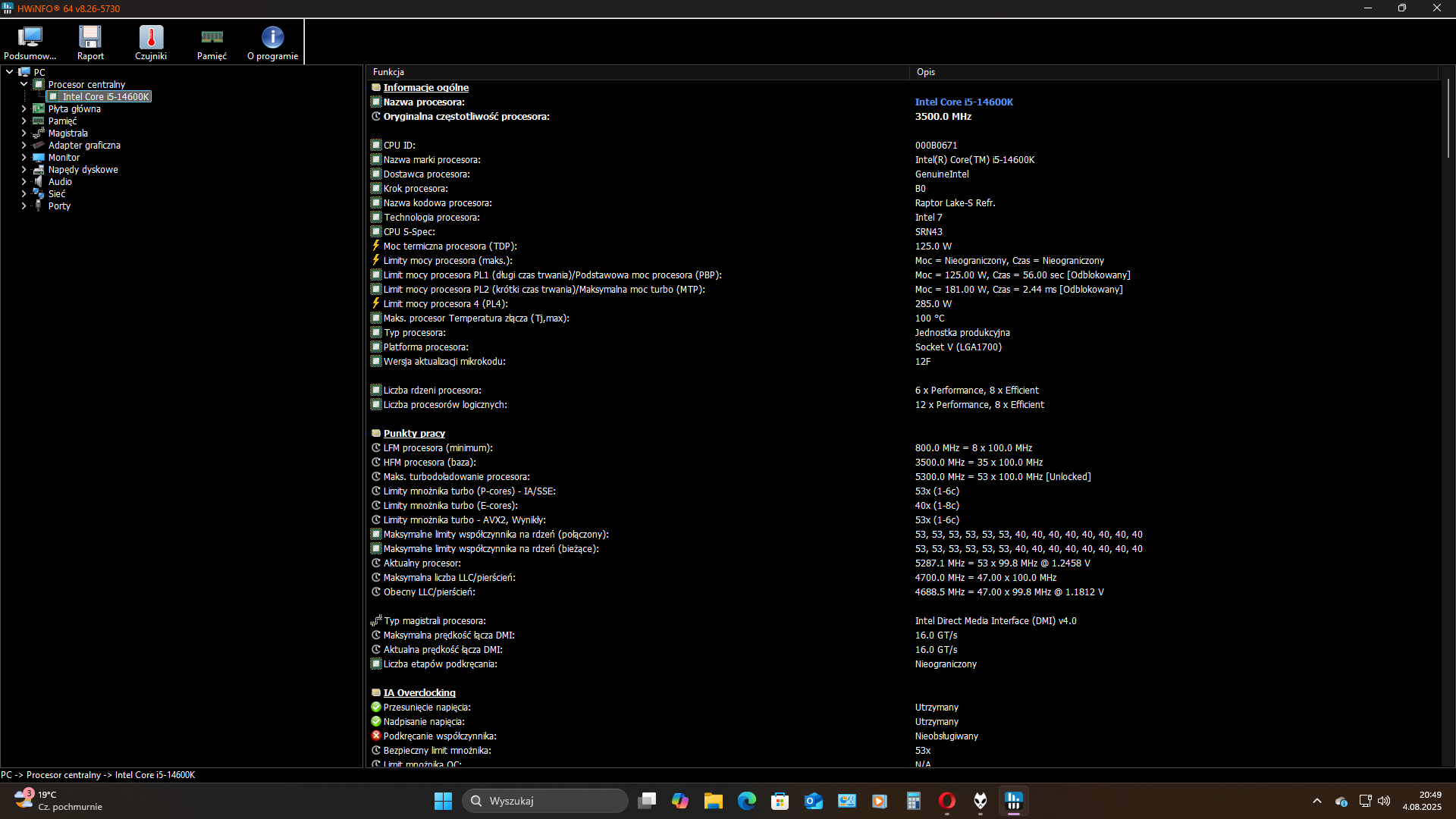 i5-13400T srmbr C0 35/22, prawdopodobnie upadek.