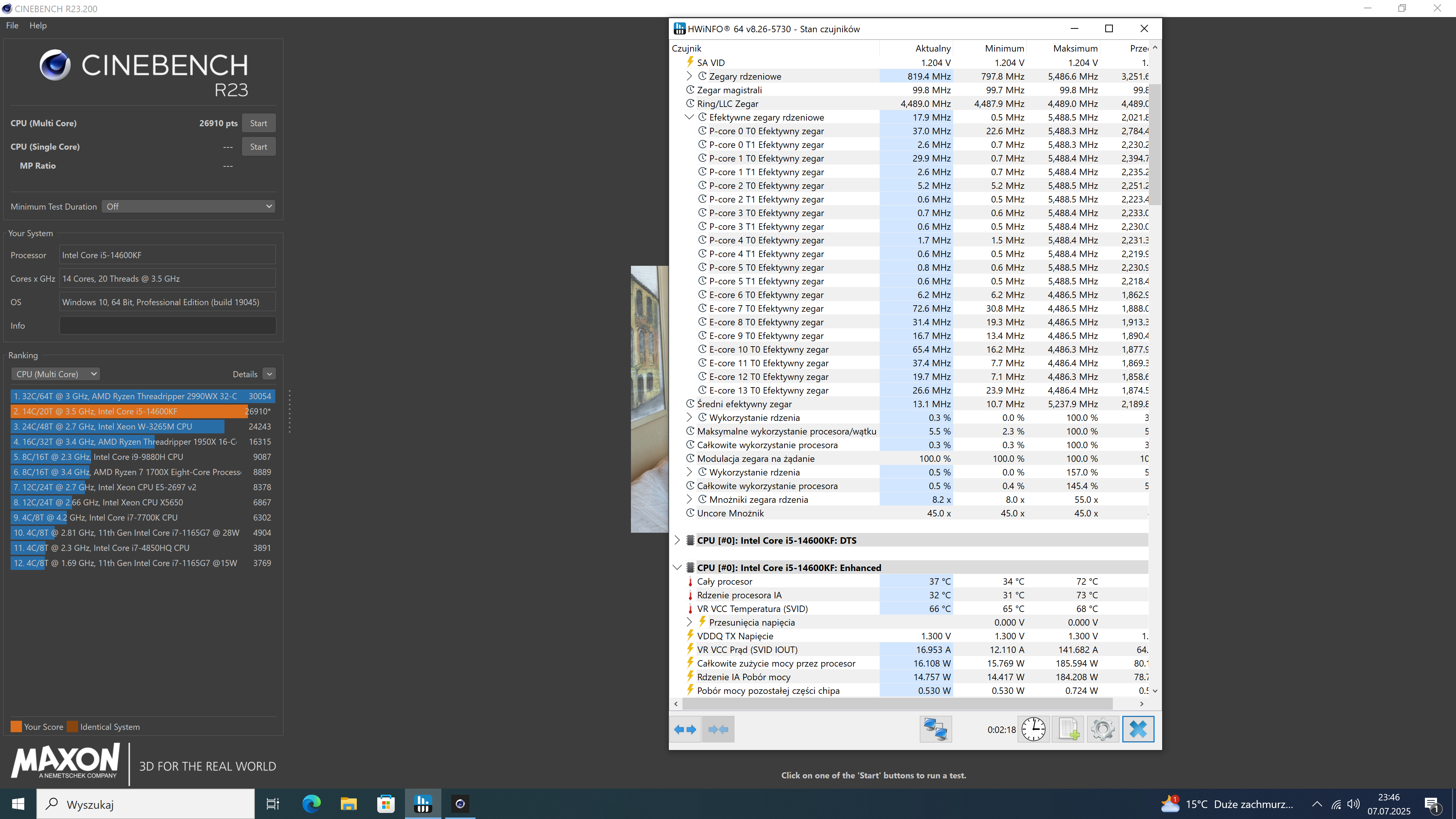 - HWiNFO: gwiazdki mogą dalej się świecić, ale po wyłączeniu ITD scheduler nie faworyzuje ich. Odpal CB R23 single/y‑cruncher ST i sprawdź, czy wątek „tańczy” po wszystkich P‑cores.