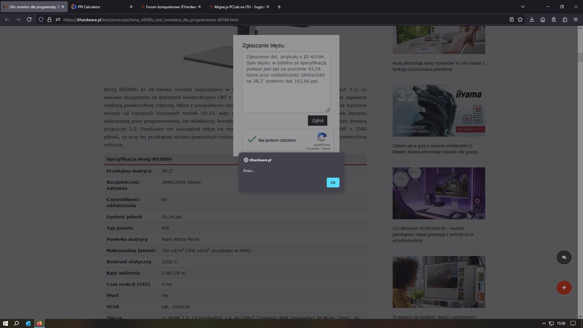 Dobra, ale ogólnie to chodzi tutaj o nie działające zgłaszanie błędów, które się powtarza. I to już było zaczęte w tym temacie, ponieważ to nie pierwszy raz. A takie zgłoszenie może się wysypać pod różnym artykułem/newsem. Przecież nie będę postów nabijał, żeby takie literówki wytykać. Od tego jest zgłaszanie błędów.