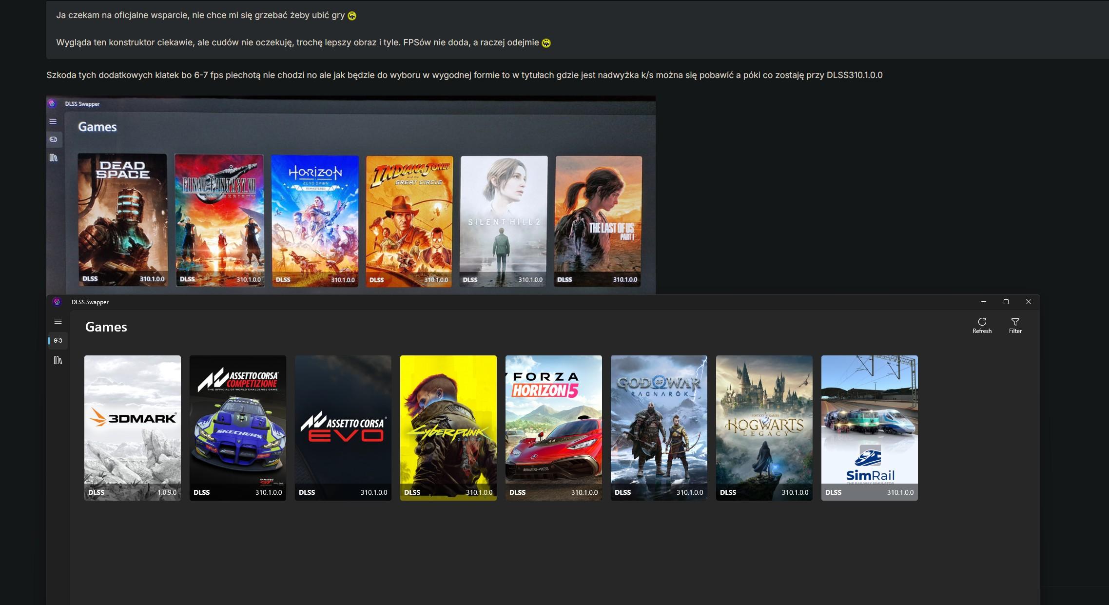 Szkoda tych dodatkowych klatek bo 6-7 fps piechotą nie chodzi no ale jak będzie do wyboru w wygodnej formie to w tytułach gdzie jest nadwyżka k/s można się pobawić a póki co zostaję przy DLSS310.1.0.0