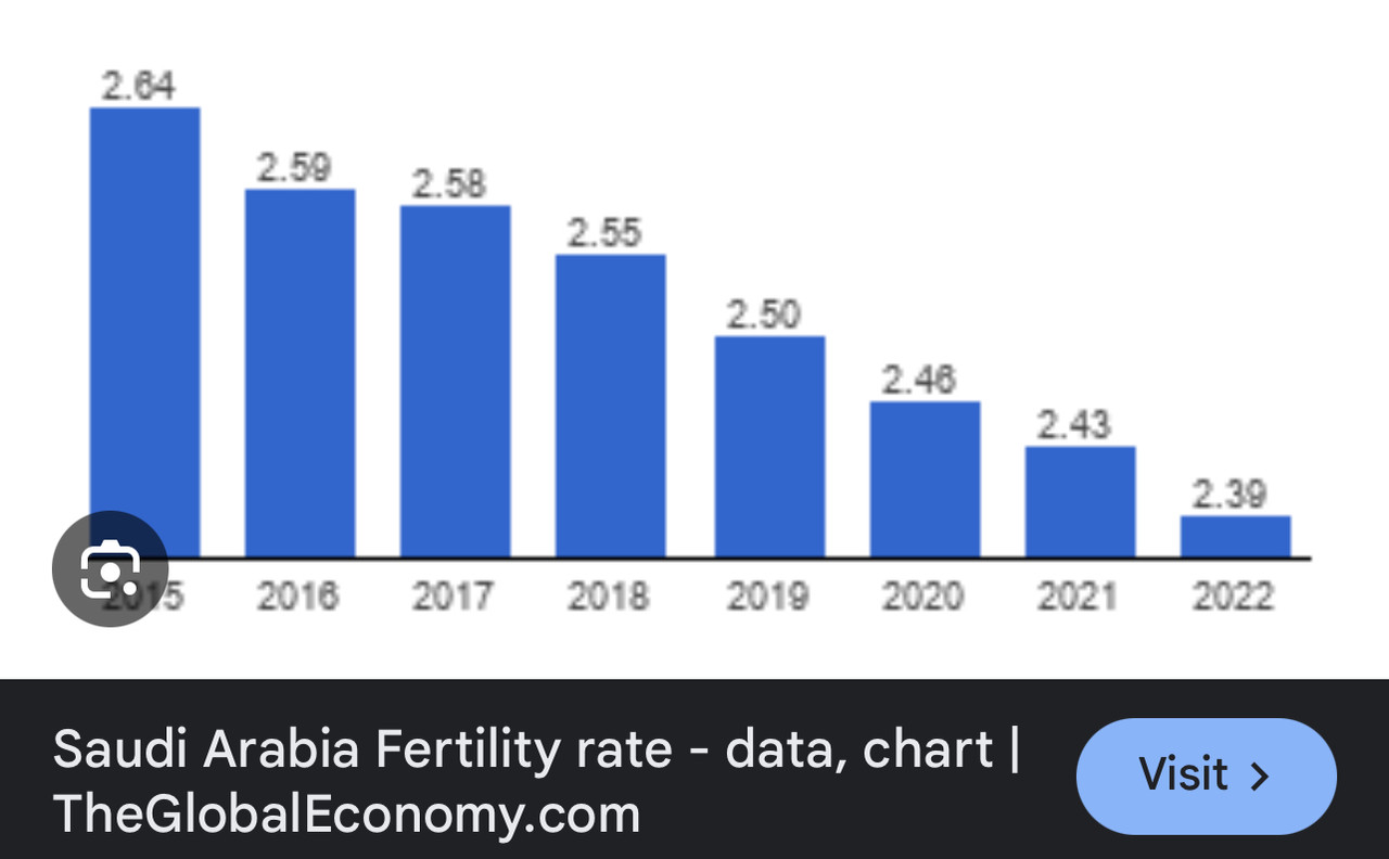 Zmiana dzietności w Arabii Saudyjskiej w ciągu 2014-2024: -18.9%
