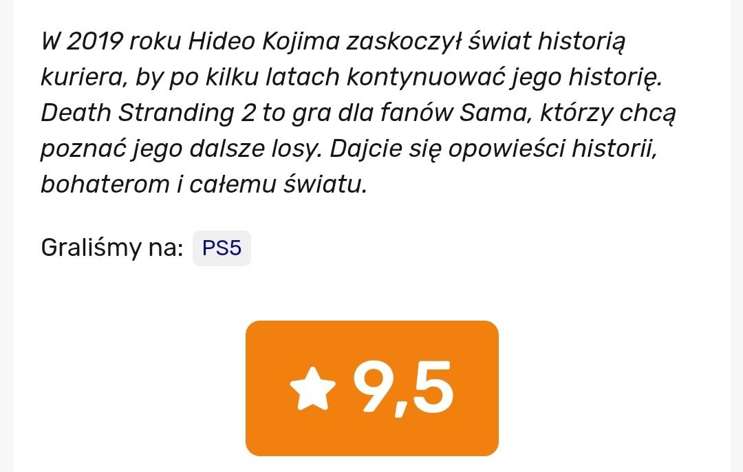 Vulc 2 191 Opublikowano 23 Czerwca Opublikowano 23 Czerwca (edytowane) W dniu 22.06.2025 o 18:13, Element Wojny napisał(a): Żadne frazesy bez pokrycia, przecież temat na labie odnośnie DS był całkiem spory, sam tam byłeś więc teraz nie udawaj że nie pamiętasz o czym tam pisano Niestety nic Ci nie podepnę, bo nie mam dostępu do archiwalnych tematów z laba. Tak w istocie było, gra budziła skrajnie różne emocje - od zachwytów, poprzez umiarkowany entuzjazm, po zwykłe rozczarowanie czy wręcz właśnie niechęć. Nie jest to nic nietypowego dla produkcji Kojimy, który znany jest zarówno z fantastycznych pomysłów, jak i sporego ego. Jedynka wyróżniała się przede wszystkim świetnym settingiem, ciekawą linią fabularną z zapadającymi w pamięć postaciami (Unger, Heartman czy Fragile). Świat był intrygujący, niestety nie do końca udało się go zapełnić odpowiednim gameplay'em. Założenia były w porządku, ale znużenie podczas dostarczania kolejnych paczek, dość szybko dawało o sobie znać. Dodatkowo, ten ostatni element, będący przecież podstawową mechaniką, został tak naprawdę mocno spłycony. Całość sprowadzała się do biegania z wciśniętymi przyciskami "równowagi", co praktycznie eliminowało wszelkie problemy. W późniejszej fazie poruszanie się pieszo zastępował motocykl, za pomocą którego nawet przewożenie bardzo niebezpiecznych materiałów, było dziecinnie proste (kto grał, wie o jakie materiały chodzi). Budowanie połączeń między placówkami? Spoko, do pewnego momentu. Gameplay nie wymagał specjalnej ostrożności, nie był wymagający, więc robiła się z tego sztuka dla sztuki. Jedynka warta jest ogrania choćby dla świata, postaci i fabuły, o to się nie martwię w przypadku sequelu. Twórcy obiecywali za to nie raz, że problemy natury gameplay'owej zostaną zaadresowane. Z tym wiążą się moje największe nadzieje i zarazem obawy, bo obietnice nic nie kosztują, a gracze nie potrafią developerów rozliczać z ich niedotrzymywania. Dlatego bardzo wysokie oceny mnie nie ruszają, ale możliwe że spróbuję sam. Nie kupiłem pudełka na PS5 od dobrego roku jak nie dłużej i to jest w sumie dobra okazja, bo w razie czego można z małą stratą odsprzedać. Edytowane 23 Czerwca przez Vulc 1