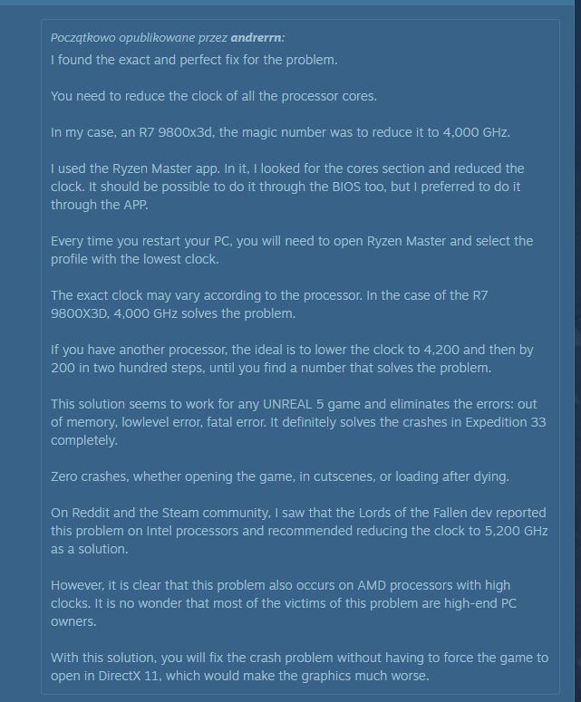 Ja się tu troche rozpisywałem na temat errorów, z wywalaniem do pulpitu pomogło... obniżenie taktowania procka, mówie poważnie gdzieś przeczytałem o takim fixie i że podobno gry na UE5 mają problem z wysokim taktowaniem na CPU ( u mnie wcześniej na PBO +200)