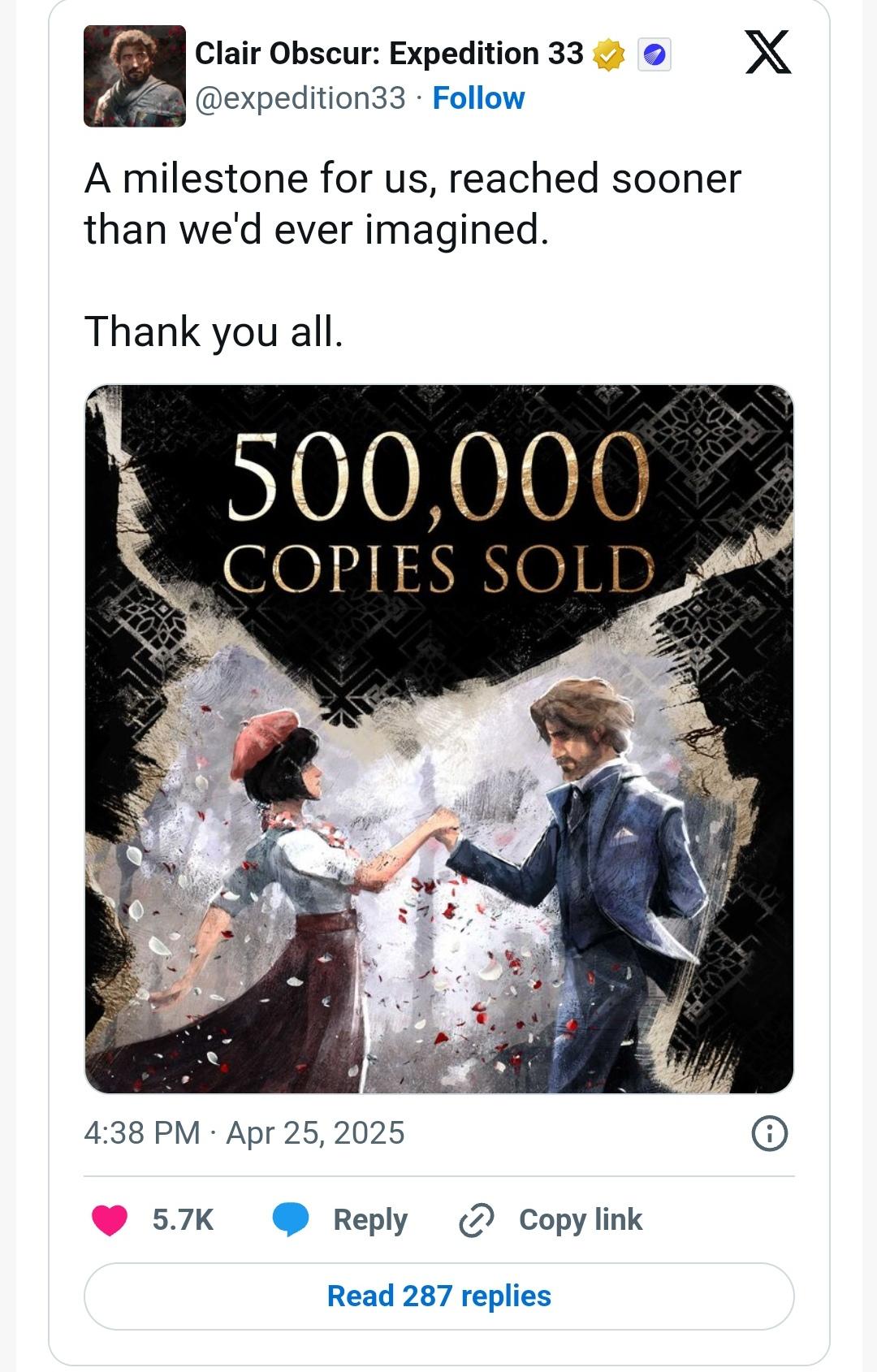 No i pięknie, gra się sprzedaje, historia i gameplay wciągają jak bagno. Może nie AAA, ale nie musi być AAA i projektem za setki milionów dolarów żeby cieszyło. Wiele dużych studiów powinno wyciągnąć z tego wnioski :) Życzę im milionowej sprzedaży.