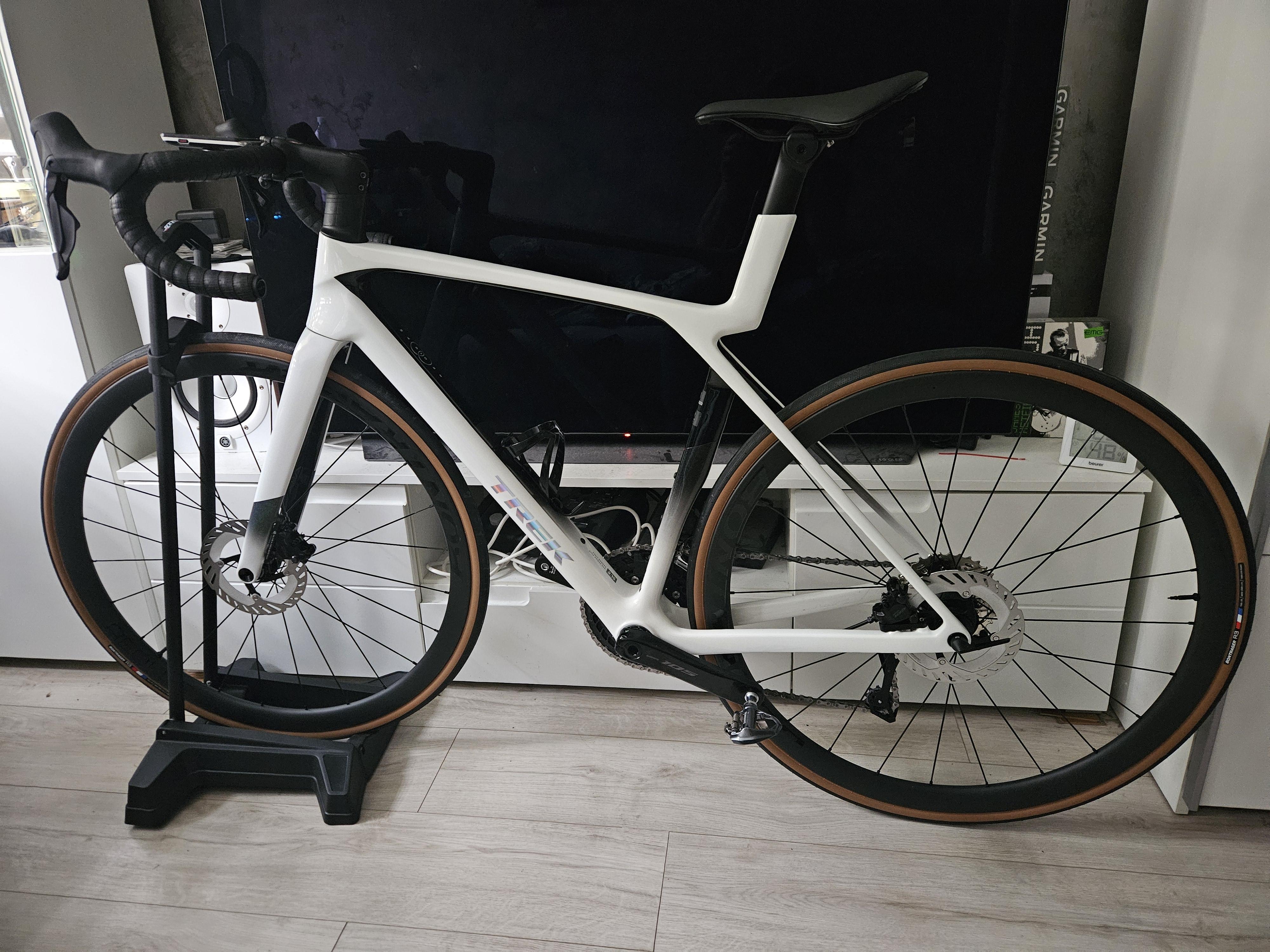No u mnie właśnie wleciał biały rower :). No i fakt mało białych się widzi. Aut zdecydowanie więcej. Także #newbikeday, ale pierwsza jazda pewnie dopiero za tydzień, bo same deszcze zapowiadają. Trek "Madonda" wygrał u mnie bitwę z Giantem TCR. Cała zima czytania różnych for i grup, który wybrać. Zdecydowały głownie oczy i lepsze podejście gwarancyjne, bardziej przyszłościowa rama (hak udh). Parę plusów Gianta które brałem pod uwagę jednak przygasło jak lepsze fabryczne koła - no ale jednak hookless. Czy też fabrycznie zamontowany pomiar mocy - lecz sprawiający same problemy, desynchronizujący się i pokazując moc o 8-15% za dużą. Masa ludzi na necie o tym pisała.