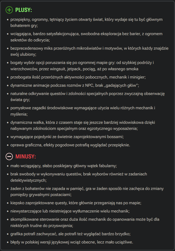 - Największy plus: świat, eksploracja, klimat i masa rzeczy do robienia. Sporo osób zwyczajnie wsiąkło.