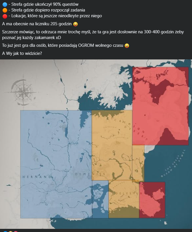 Pokazuje mapę, po 200 godzinach nie zwiedził nawet połowy mapy.
