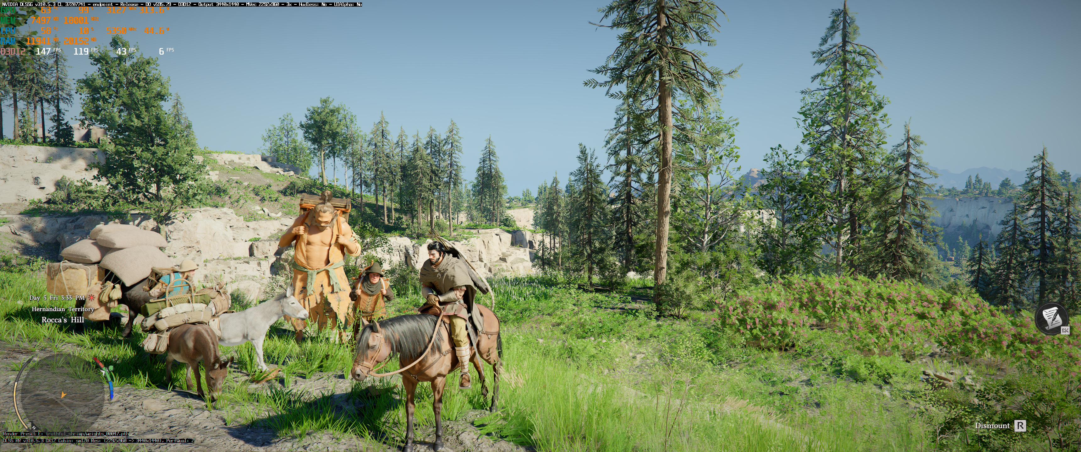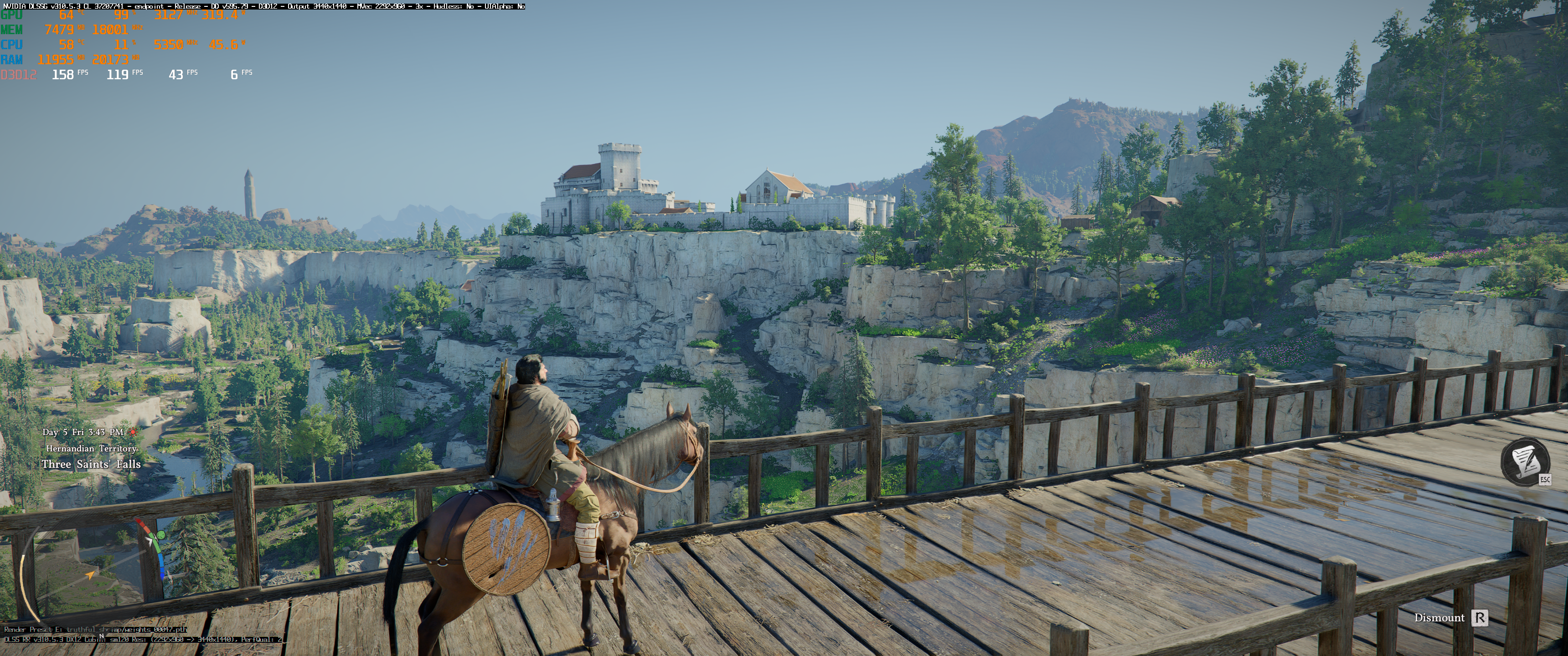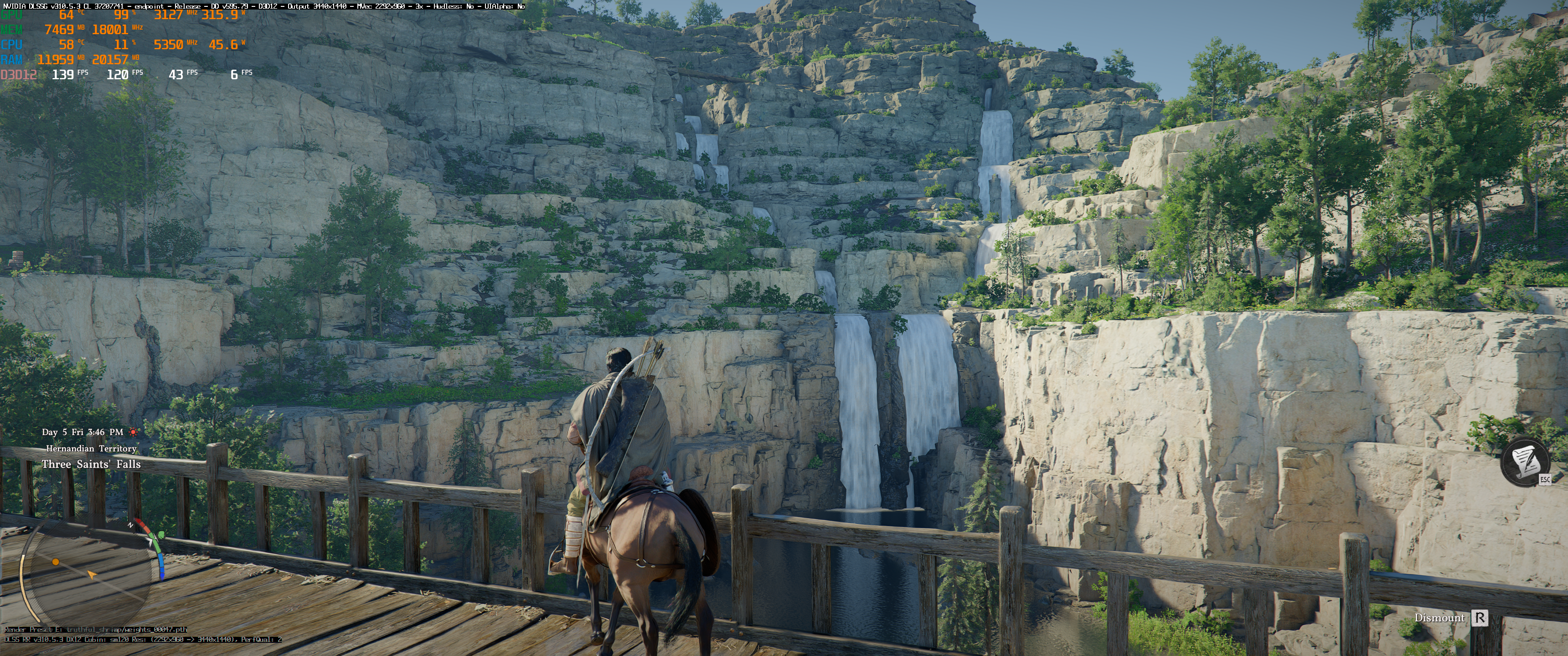 Masz preset Cinematic + ray reconstruction, 3440 DLSS Q. FGx3