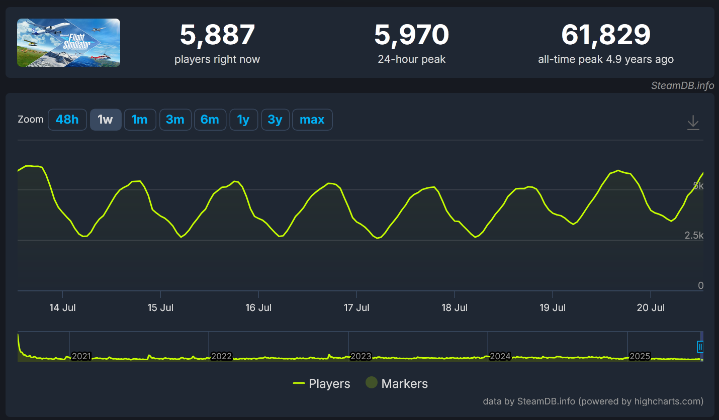 Taki DCS mimo że ma 100x bardziej zaawansowane systemy, fizykę lotu i tym podobne działa jak złoto, na 5800X3D żadnych dropów, wszystko płynne i lata się cudownie. Microsoft jak zwykle odwalił kupsztala, a 2020 zagrywałem się długimi miesiącami po prostu latając i podziwiając widoki :/
