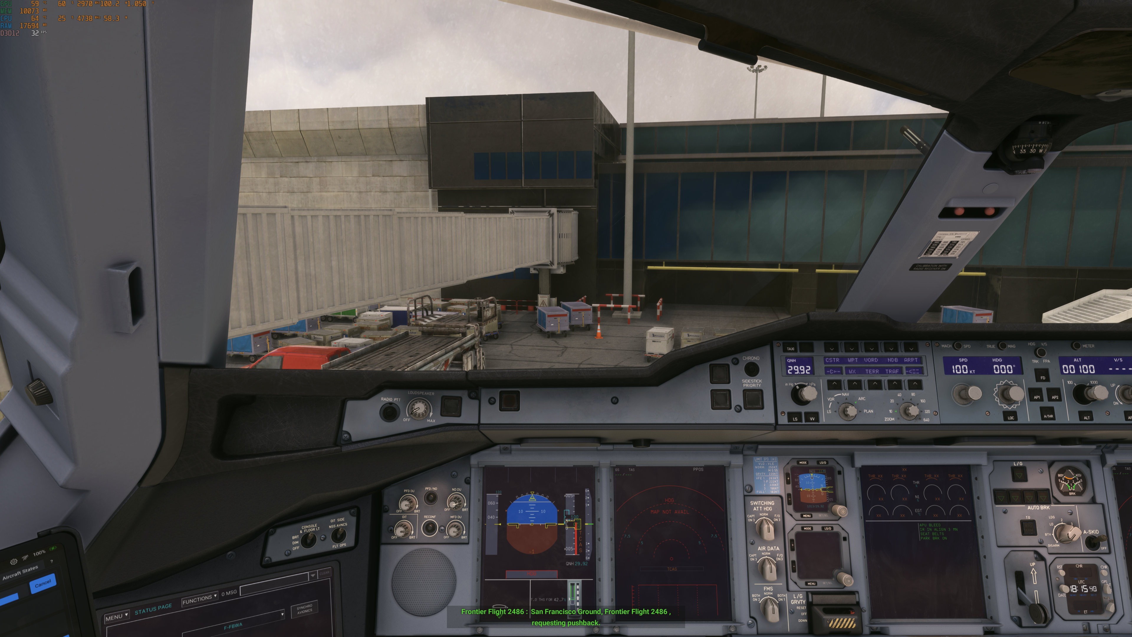 Problem MFS jest taki że na ziemi, podczas lądowania czy startu FPS potrafi spaść poniżej 30 FPS nawet na topowych procesorach.
