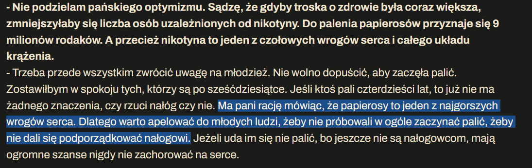 Odniosę się do ŚP prof Religi - można operować ludzi, których zawiodło serce przez fajki A I TAK SAMEMU je jarać. Jedno drugiego nie wyklucza.
