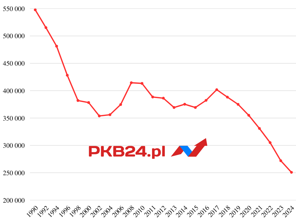 W 2024 roku w Polsce urodziło się około 252 tysiące żywych dzieci, co stanowi najniższą liczbę odnotowaną w całym okresie powojennym.