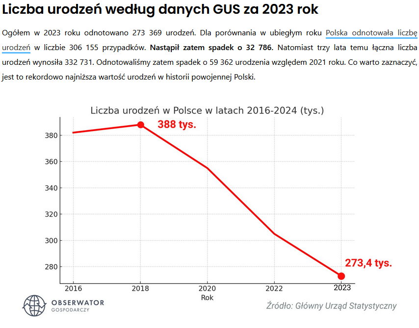 Był duży spadek w latach w 90 a następnie było w miarę stabilnie. Później zaliczyliśmy ogromny spadek chwilę po dojściu do władzy PiSu. Nawet 500+ nie pomogło. Nie twierdzę, że wszystkiemu winna jest prawica, ale całkowite odrzucanie tego argumentu jest głupie widząc jak i kiedy malała liczba urodzeń.