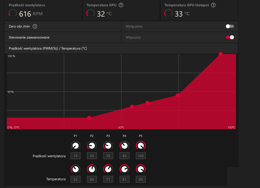 Z drugiej strony miałem też RX 6600XT, RX 5600(XT), RX 580 i tam wszystko chodziło jak trzeba, łącznie z krzywą wentylatorów Adrenaline.
