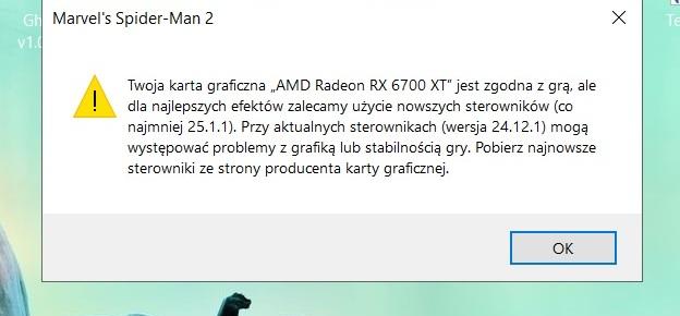 pytanie moje stąd, że spiderman 2 pokazuje że należy mieć co najmniej 25.1.1. do stabilnego grania,