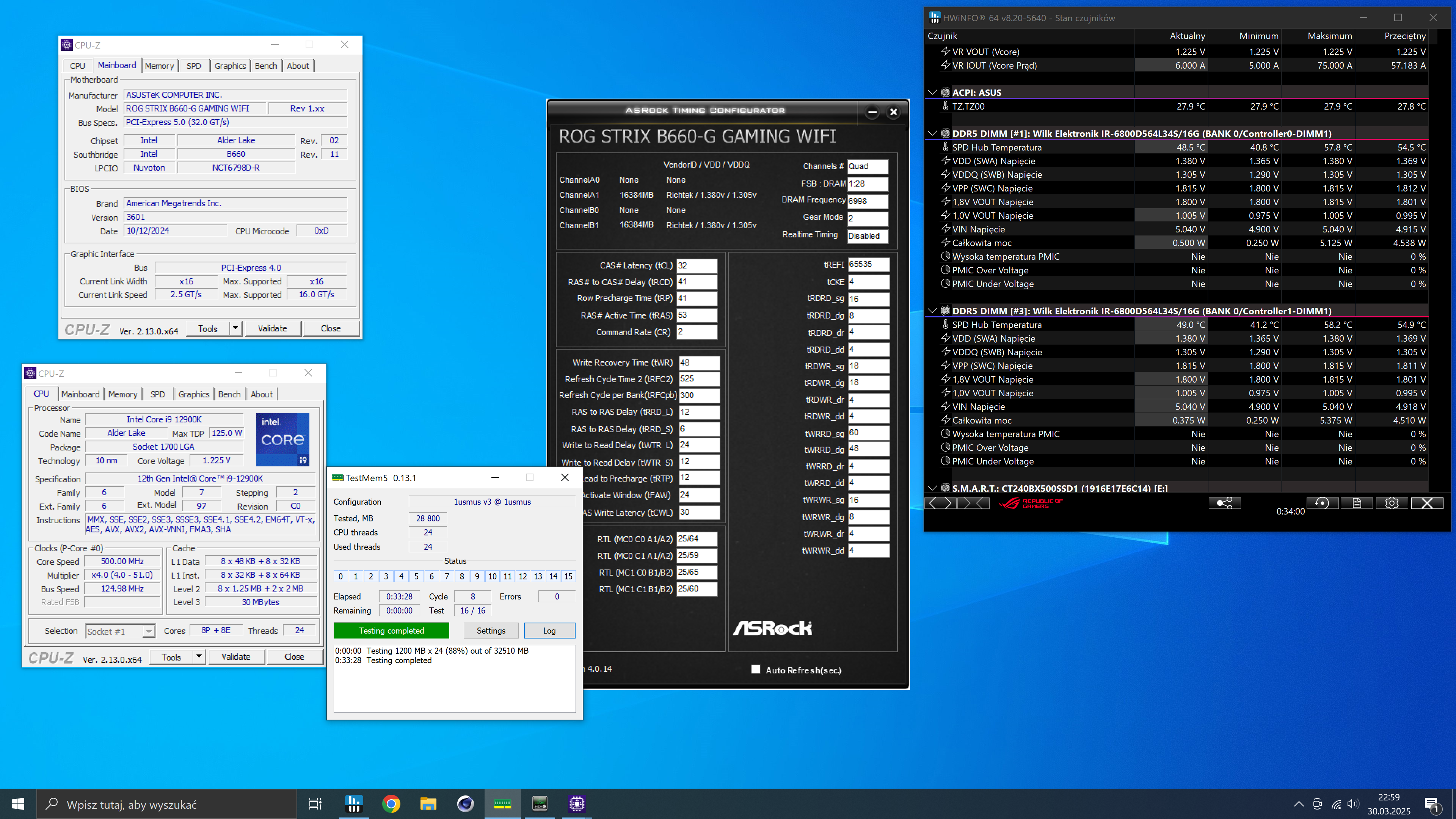 Nie mam czasu i chęci na więcej testów dziś, wszystko totalnie z palca, a poniżej 1.4v nie bootował bo miałem coś popsute z napięciami od fclk,dałem 2:1 i wstał i działa na niższym napięciu memory niż wcześniej próbowałem . Starczy na dziś, idę pograć :)