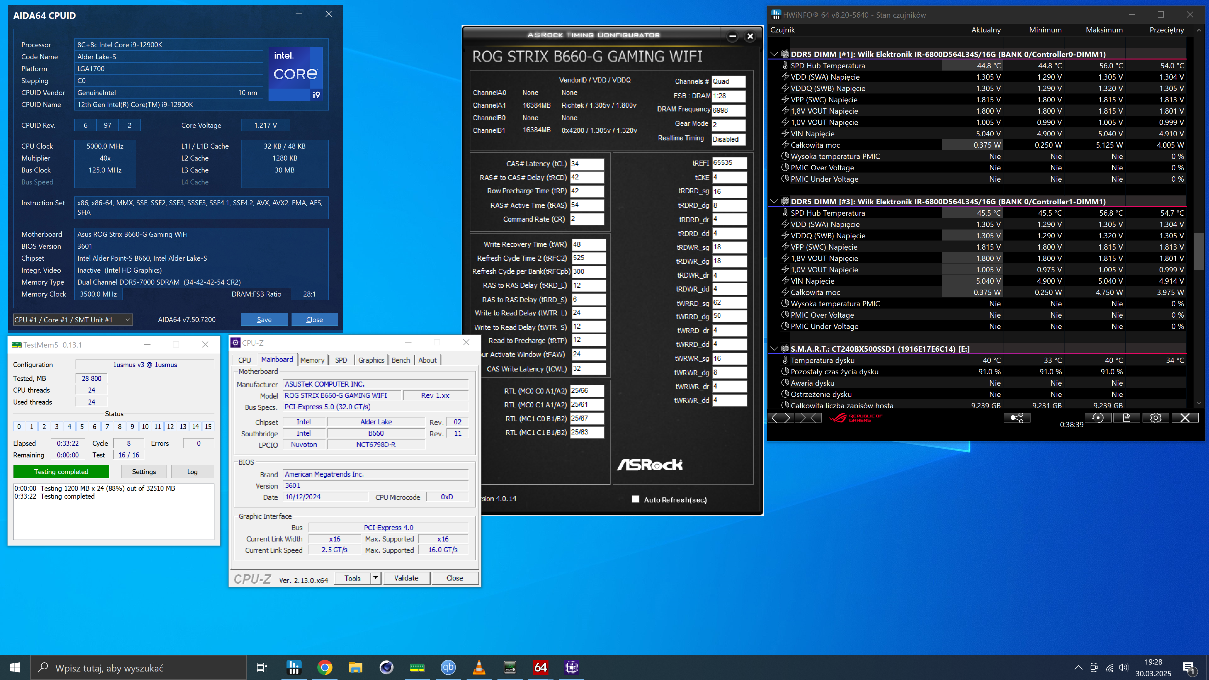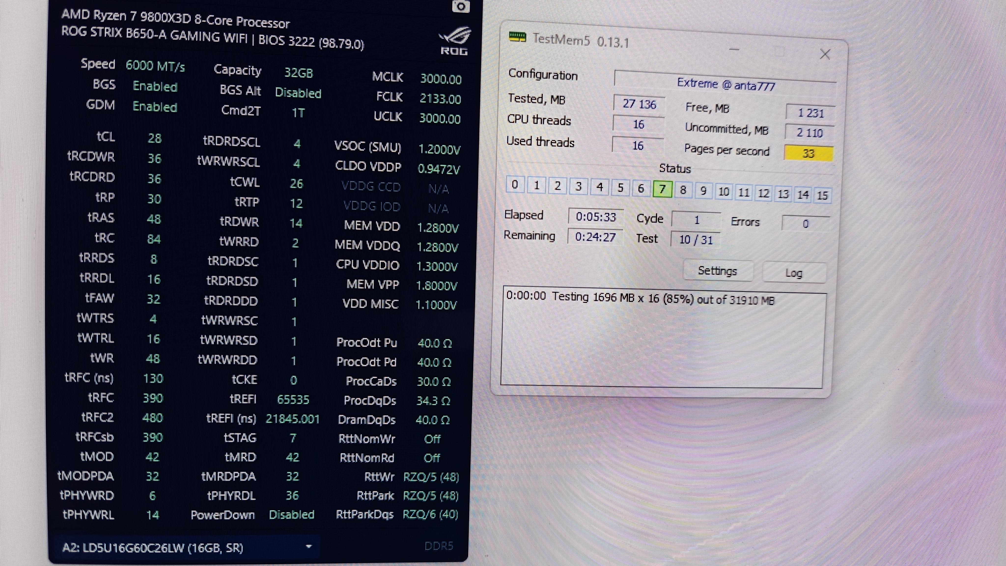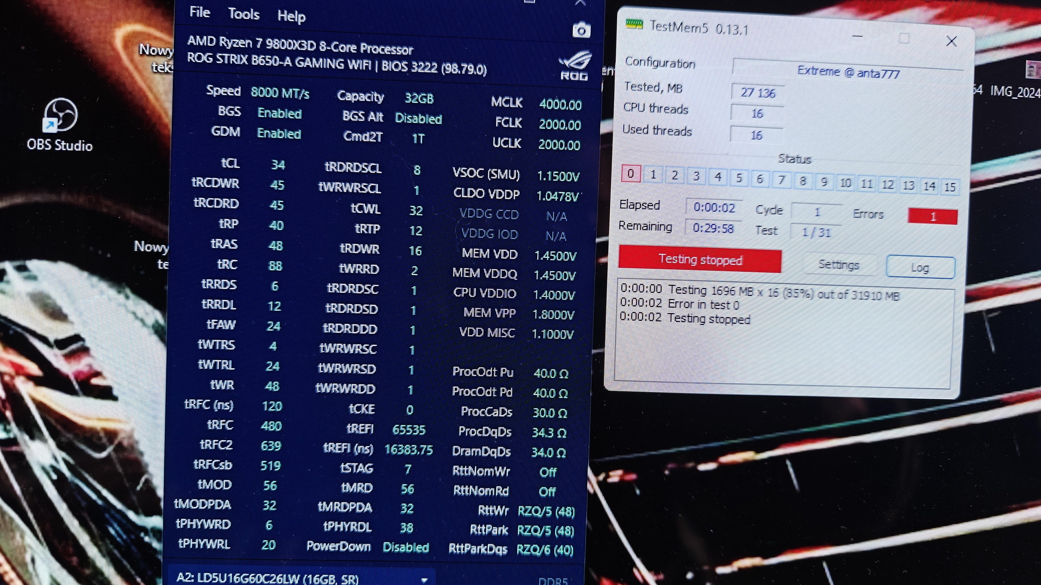 Mogę kupić okazyjnie patrioty 8200mhz 2x24gb. Sam już nie wiem czy brać 2x16 adie ale wyczesany bin, 2x24 mdie v2 czy może 2x32gb adie... Wrzuciłem patrioty 8200mhz 2x16 w płytę, ustawiłem 6000cl28 na 1.35v, idzie gładko. W sumie ciężko się odnieść jaki bin mają te patrioty, bo nie miałem chęci ani czasu ich tak solidnie testować.