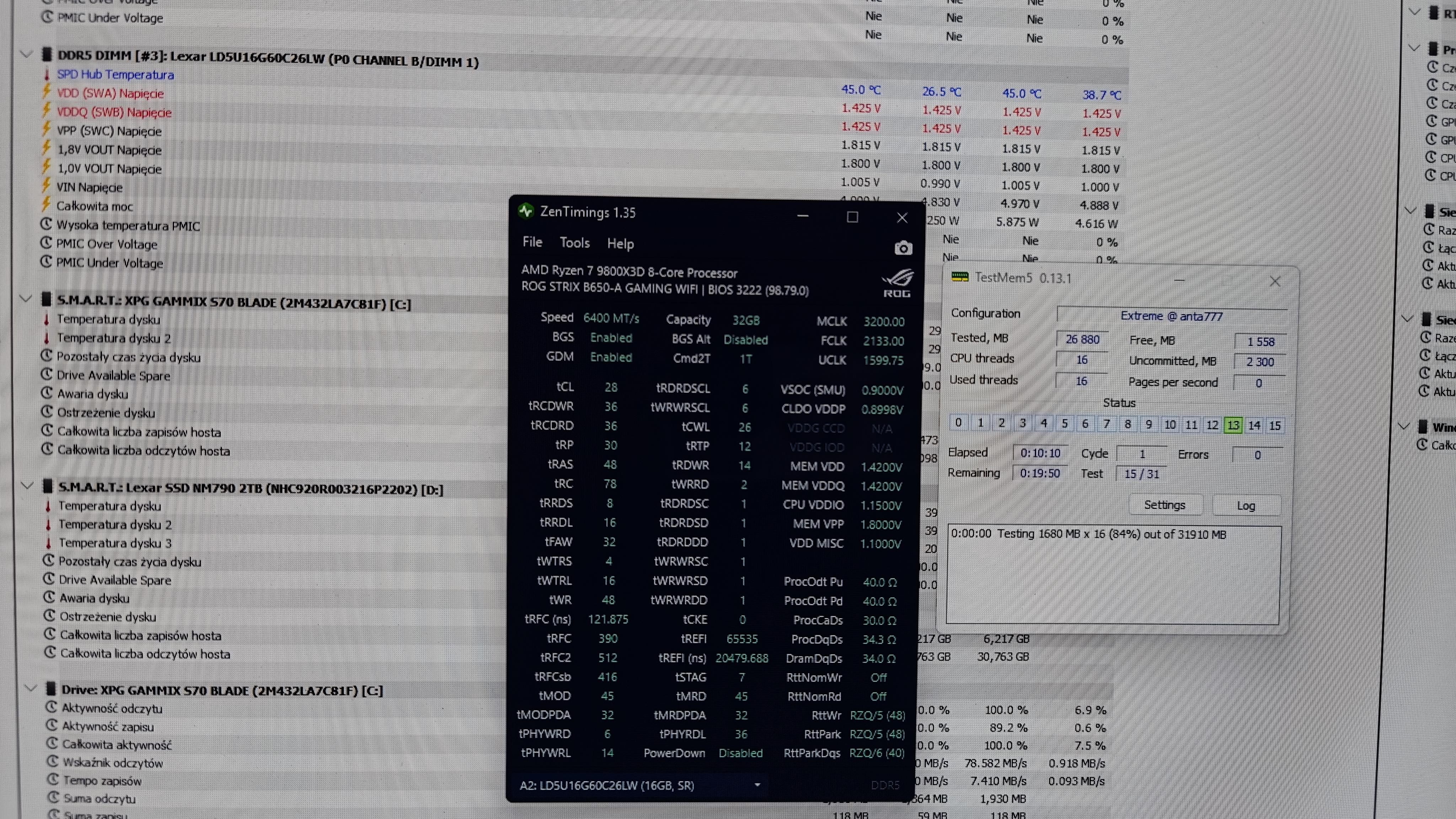 Nie chcąc chwalić dnia, przed zachodem słońca, ale chyba na lexarach wskoczy 8000cl34 poniżej 1.5v, o ile płyta na to pozwoli :E . Jak już widzę fochy na 6400cl28 to nie jest dobrze.