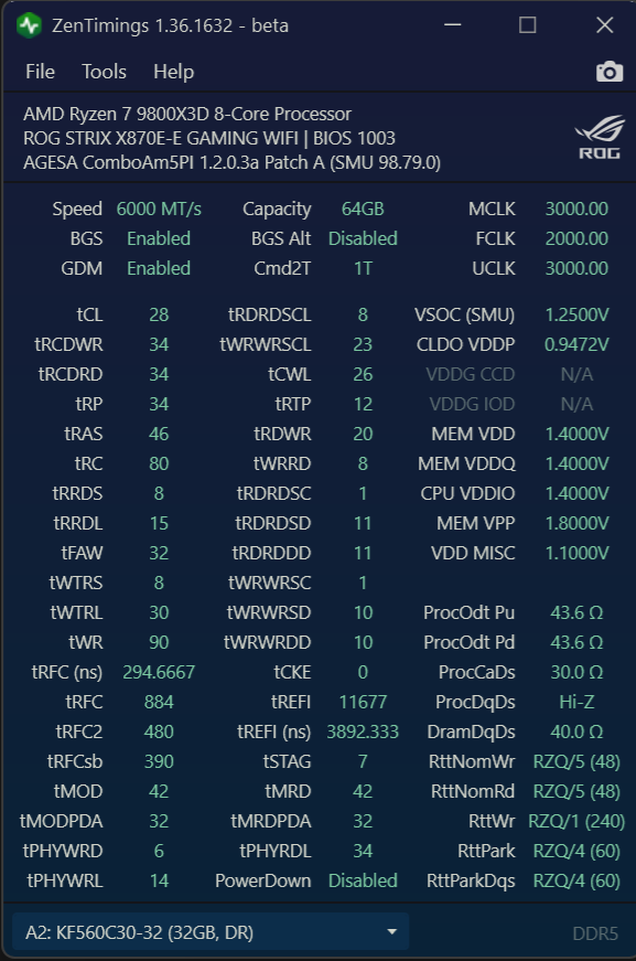 Bez problemu powinny wstać stabilnie 8000C38 1.45V z dociśniętymi timingami + Nitro 😉 u mnie zdecydowanie korzystniej lala BF2042 na 8000 niż 6000 🤫