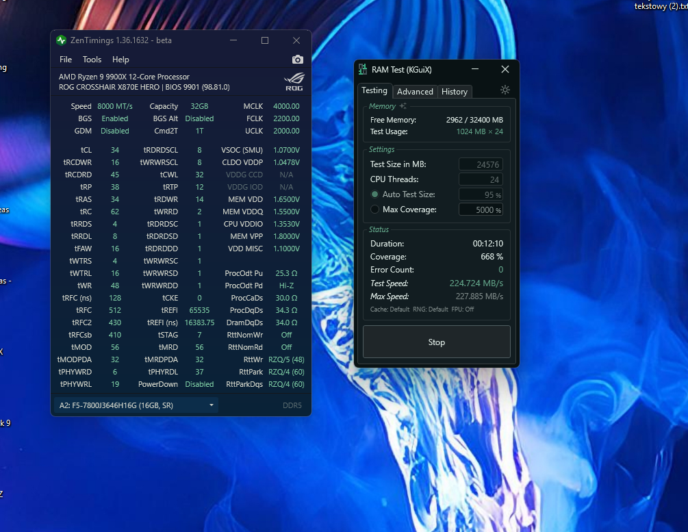 Raczej będę polował na F5-6000J2636H24GX2-TZ5N 1.45V, które CL 28 zrobią pewnie na 1.32-1.35V :)  Na tych teraz robilem 6000c30 na 1.20-1.25v