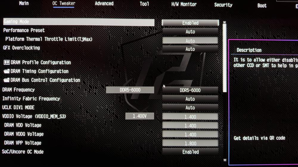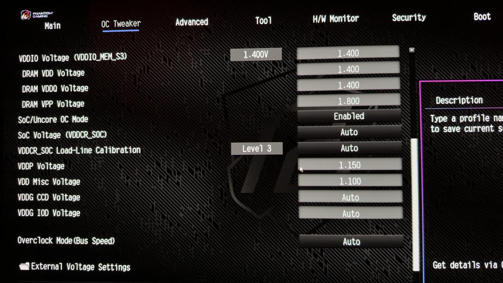 - Vddq Training — 6400: Auto | 6600: Auto | 6800: On | 7000: On