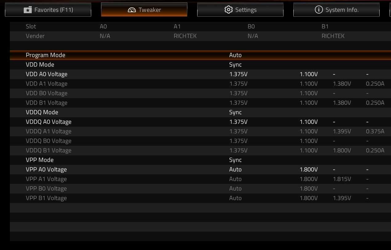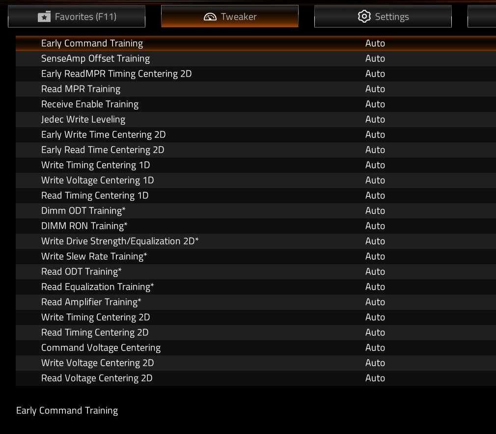 - Read Equalization Training — 6400: Off | 6600: Auto | 6800: On | 7000: On