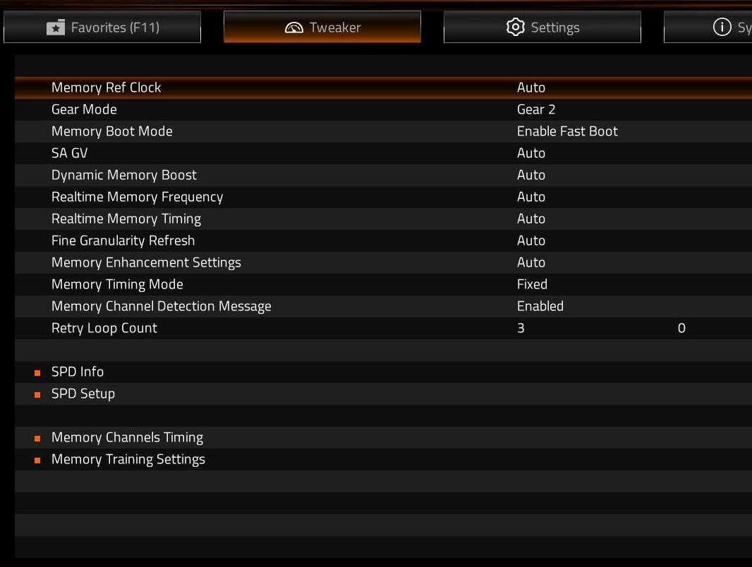 - Memory Fast Boot: Disabled na etapie strojenia; po ustabilizowaniu profilu → Enabled (szybszy boot).