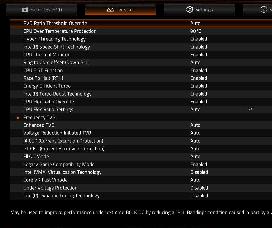Daj model płyty (np. AORUS Elite/Master/Tachyon) i wersję BIOS/ME – dociągnę rekomendacje do konkretnego BIOSu (na Gigabyte Auto bywa „always on” powyżej ~6600, a na innych F‑wersjach inaczej).