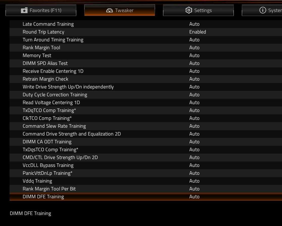 - DIMM DFE Training — 6400: Off | 6600: Auto | 6800: On | 7000: On