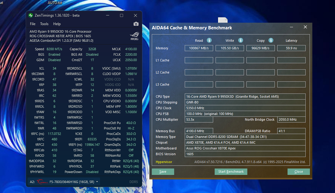 Sprawdziłem Ramki na 8000MT CL40 (asynchronicznie) względem 6000MT CL30 (synchronicznie). W obu przypadkach napięcie 1,35V, dlatego dość luźne timingi, ale dalszych rzędów zoptymalizowane. Wydajność w grach bardzo podobna mimo że na 8000MT wg AIDA jest 1 ns więcej. W Cyberpunku jest nawet lepiej na 8000.