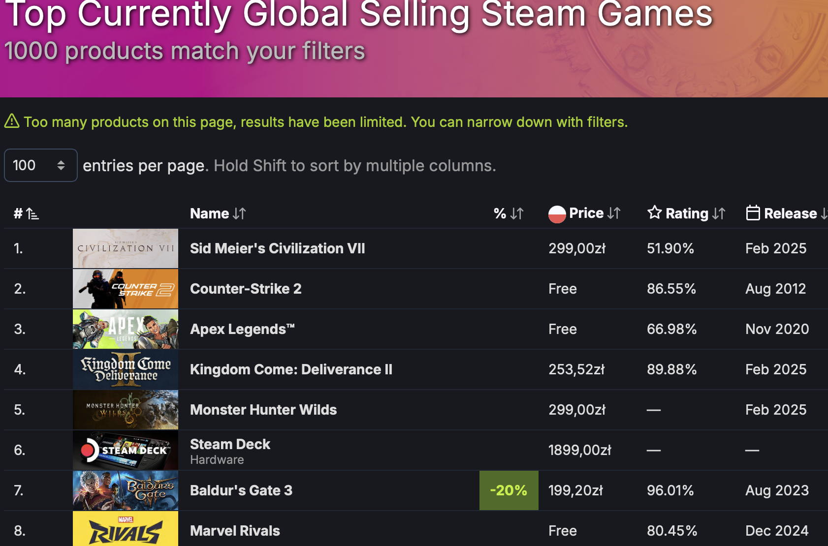 Tia, KCD 2 obecnie 5 miejsce w top sell a Civ 7 na miejscu 8. Obie gry sprzedały około 2 mln kopii i nadal nie ma to żadnego znaczenia bo to nie te same gatunki i fanów Civ jest masa więc wysoka sprzedaż nikogo nie dziwi.