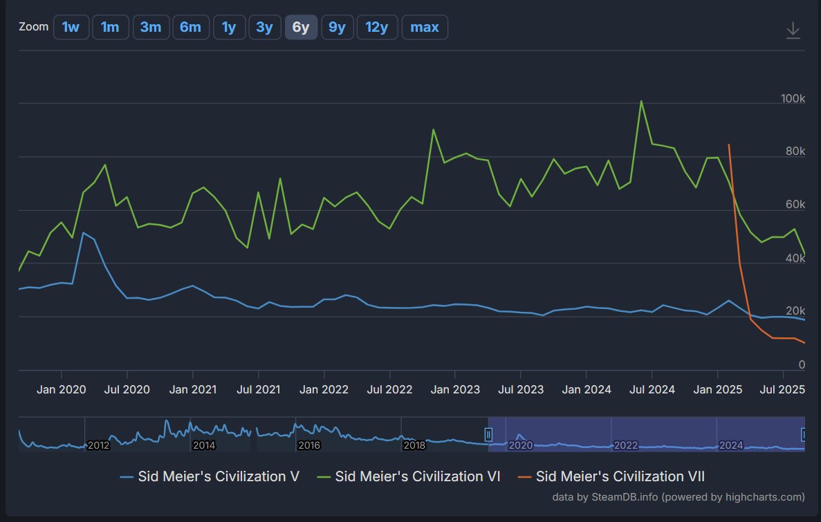Civ 7 to produkcja długoterminowa. Jak każda poprzednia. Po roku czasu będzie miała więcej graczy. Civ 5 miał gorszy start i teraz jest na topie. To samo będzie z 7.