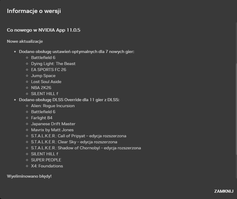 Musisz mieć sterownik 572.16 i NVIDIA_app_v11.0.2.312