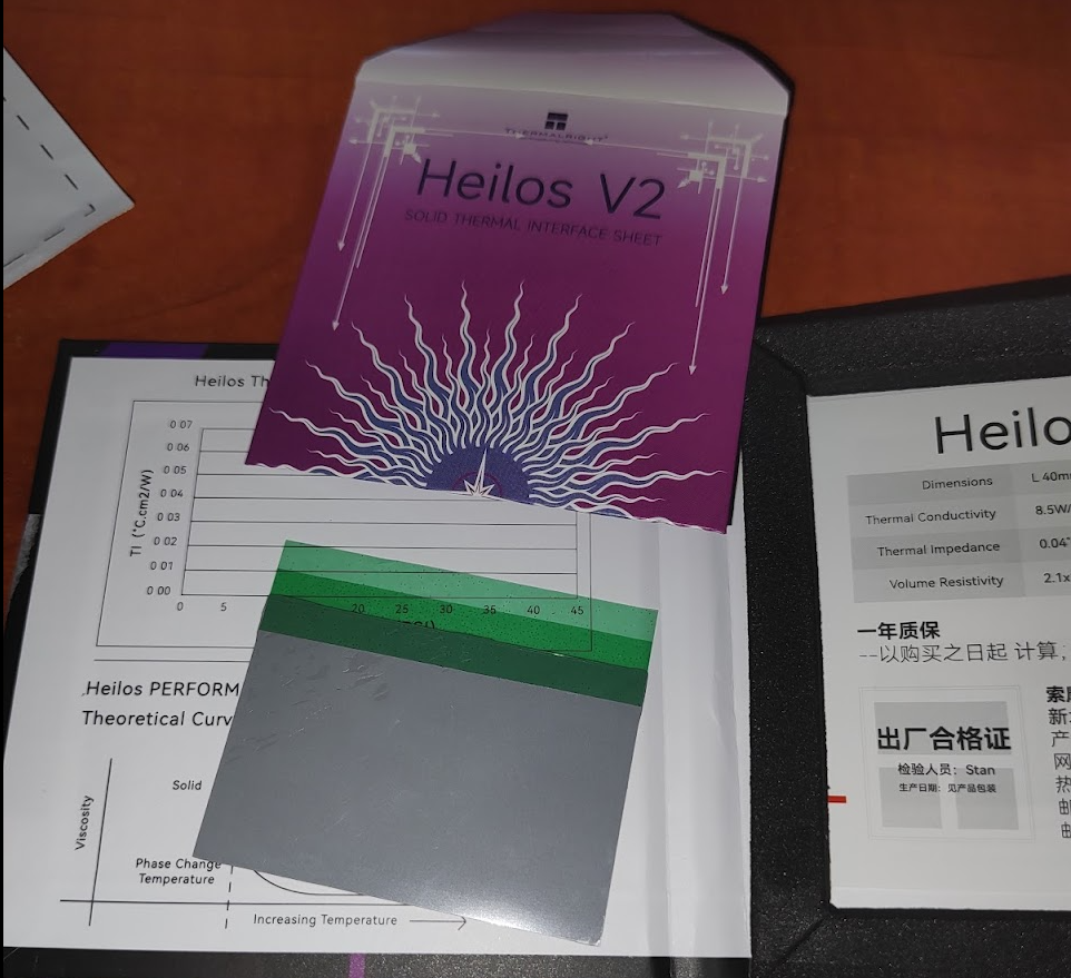 Thermalright Heilos v2 dotarł. Wg testów i opinii na reddit wydajność ma być identyczna z Thermal Grizzly phasesheet czyli rebrand PTM7950. Na procka chyba też dam tego PTMa, Freezer 36 ma mała podstawę i sporo jeszcze mi zostanie :P