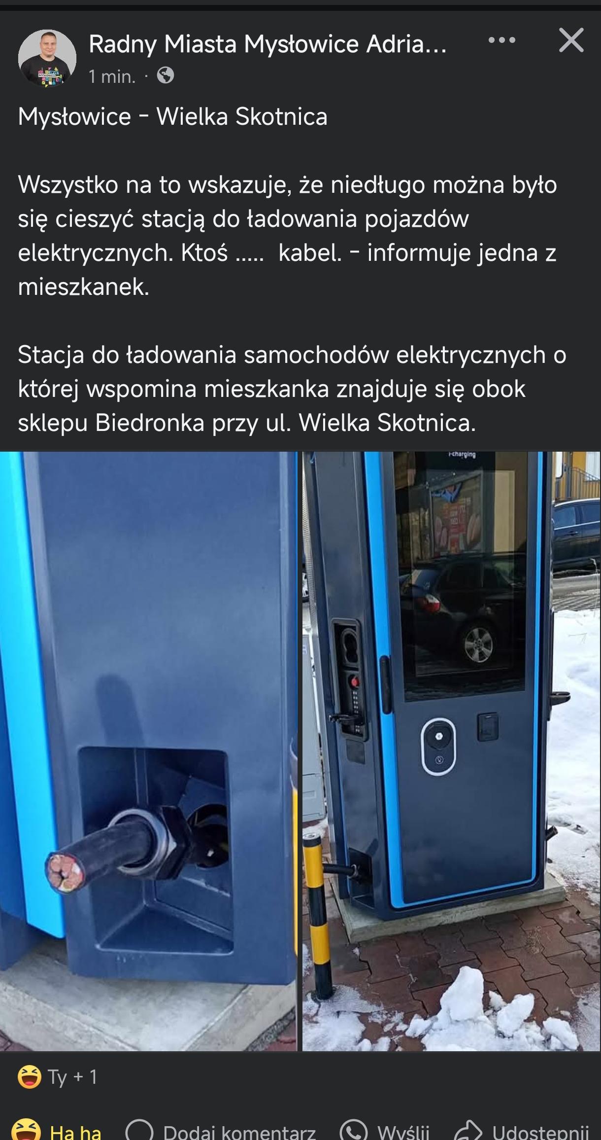 Katystopej 980 Opublikowano 17 Stycznia Opublikowano 17 Stycznia (edytowane) To by było na tyle, odnośnie elektryków w Polsce moje miasto Edytowane 17 Stycznia przez Katystopej 1